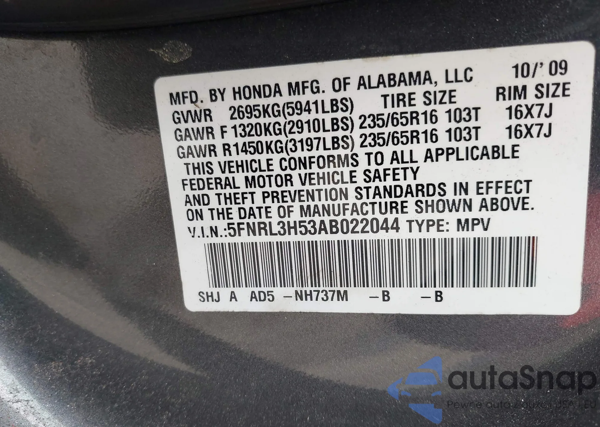 • VIN 5J8TB18288A014934
