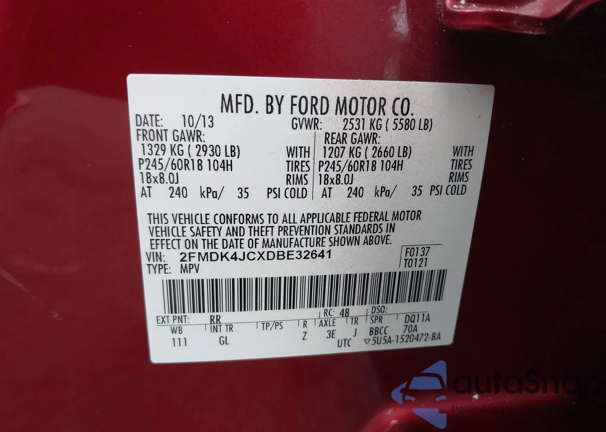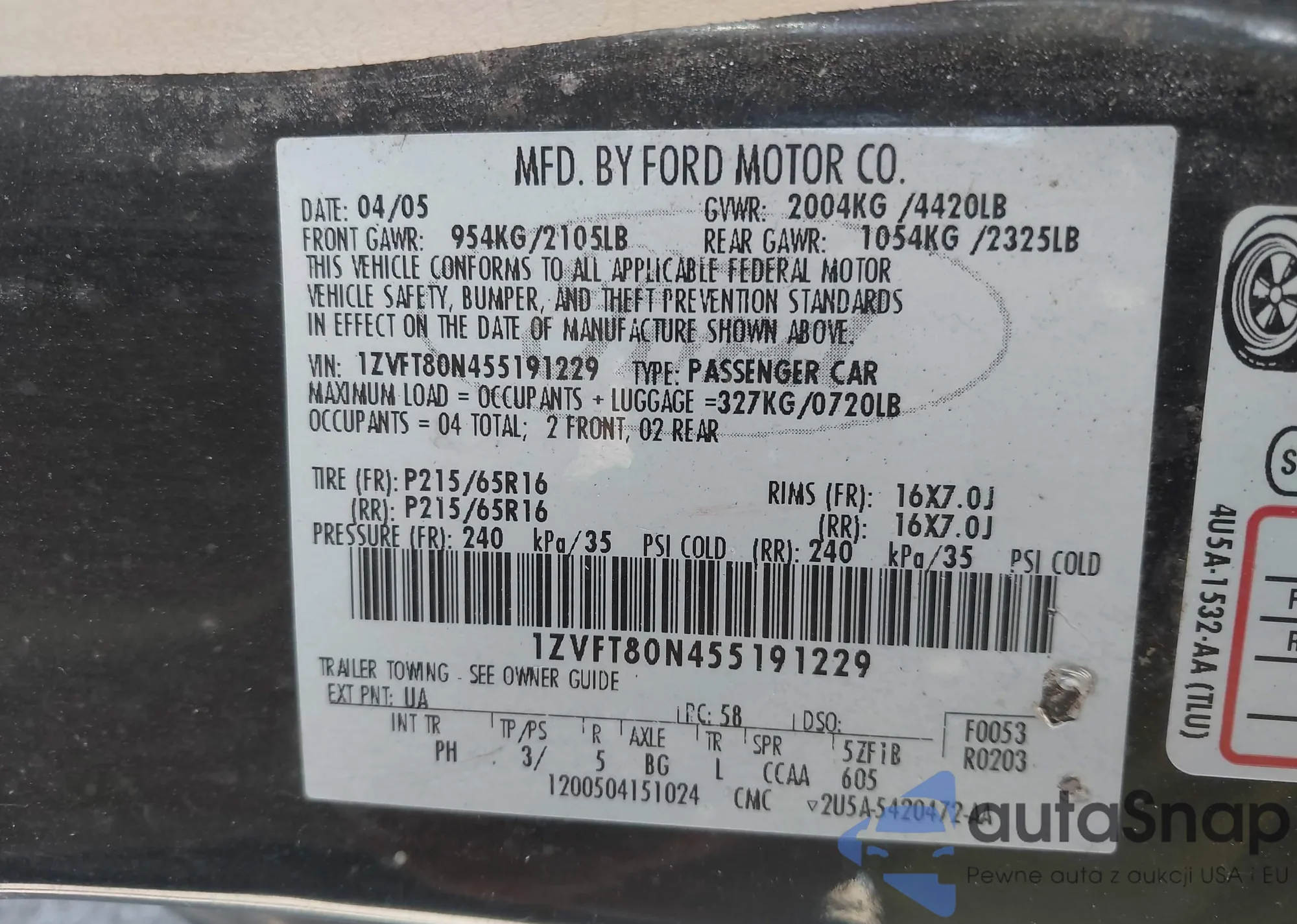 • VIN 1ZVFT80N455191229