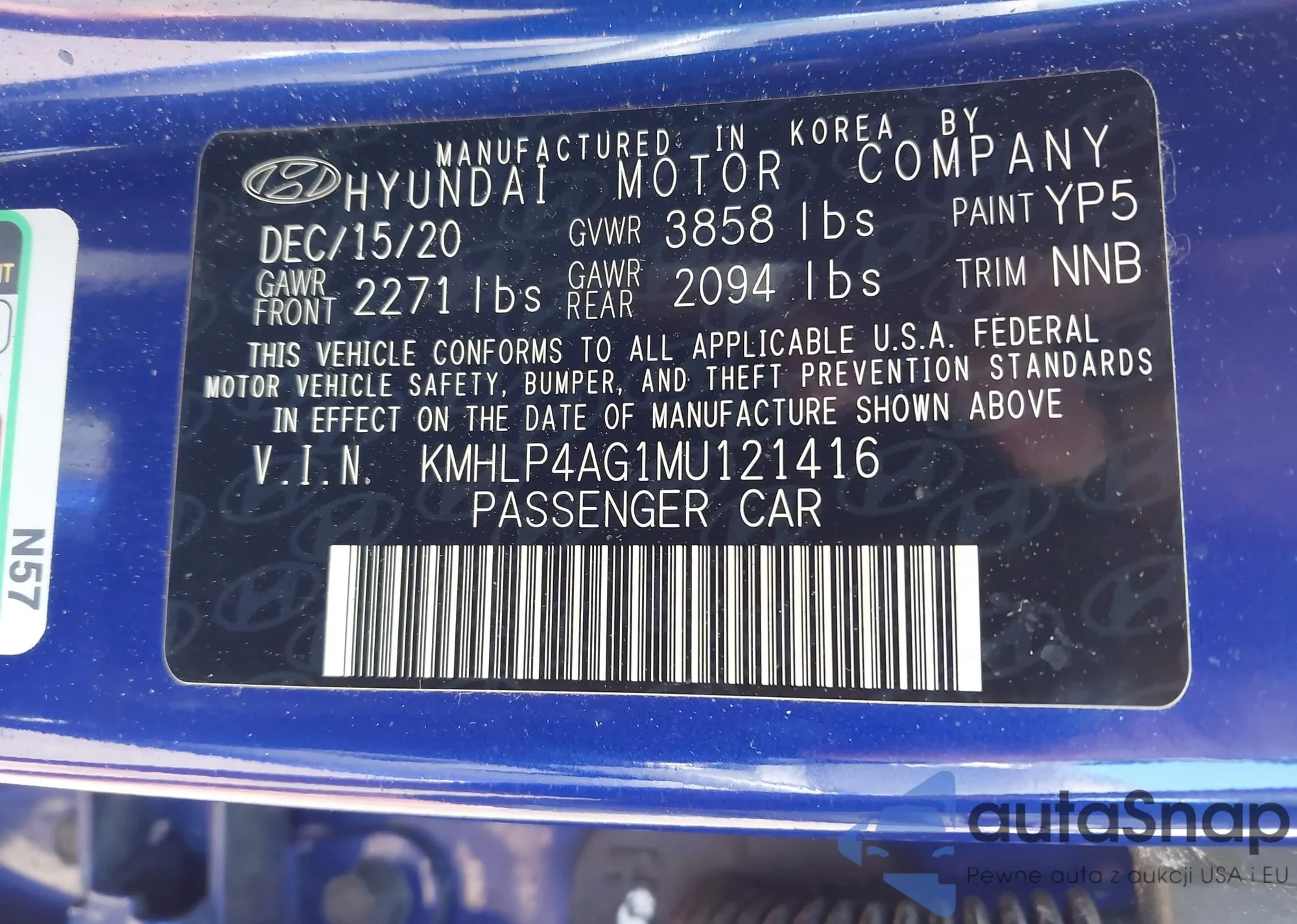 • VIN KMHLP4AG1MU121416