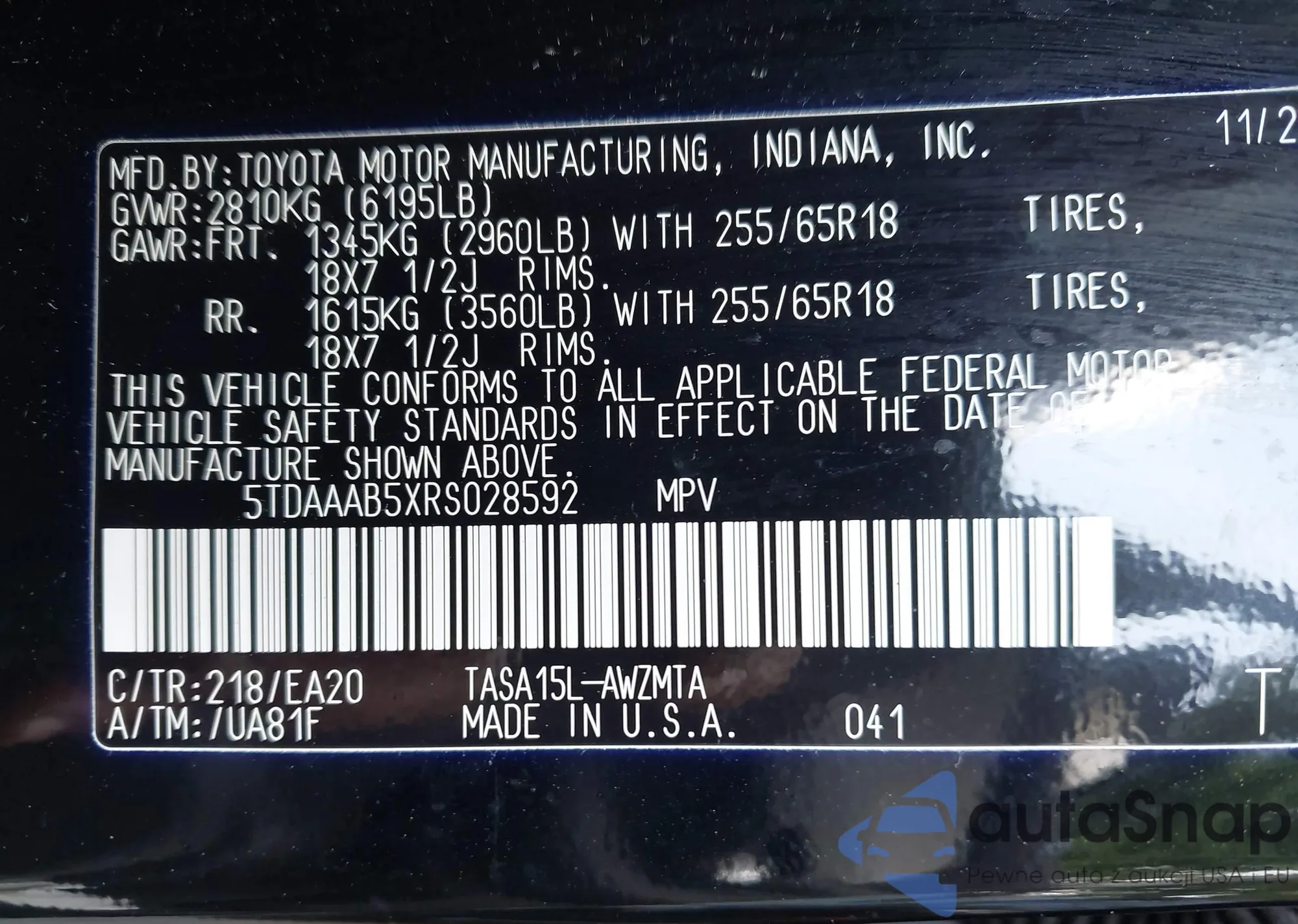 • VIN 5TDAAAB5XRS028592