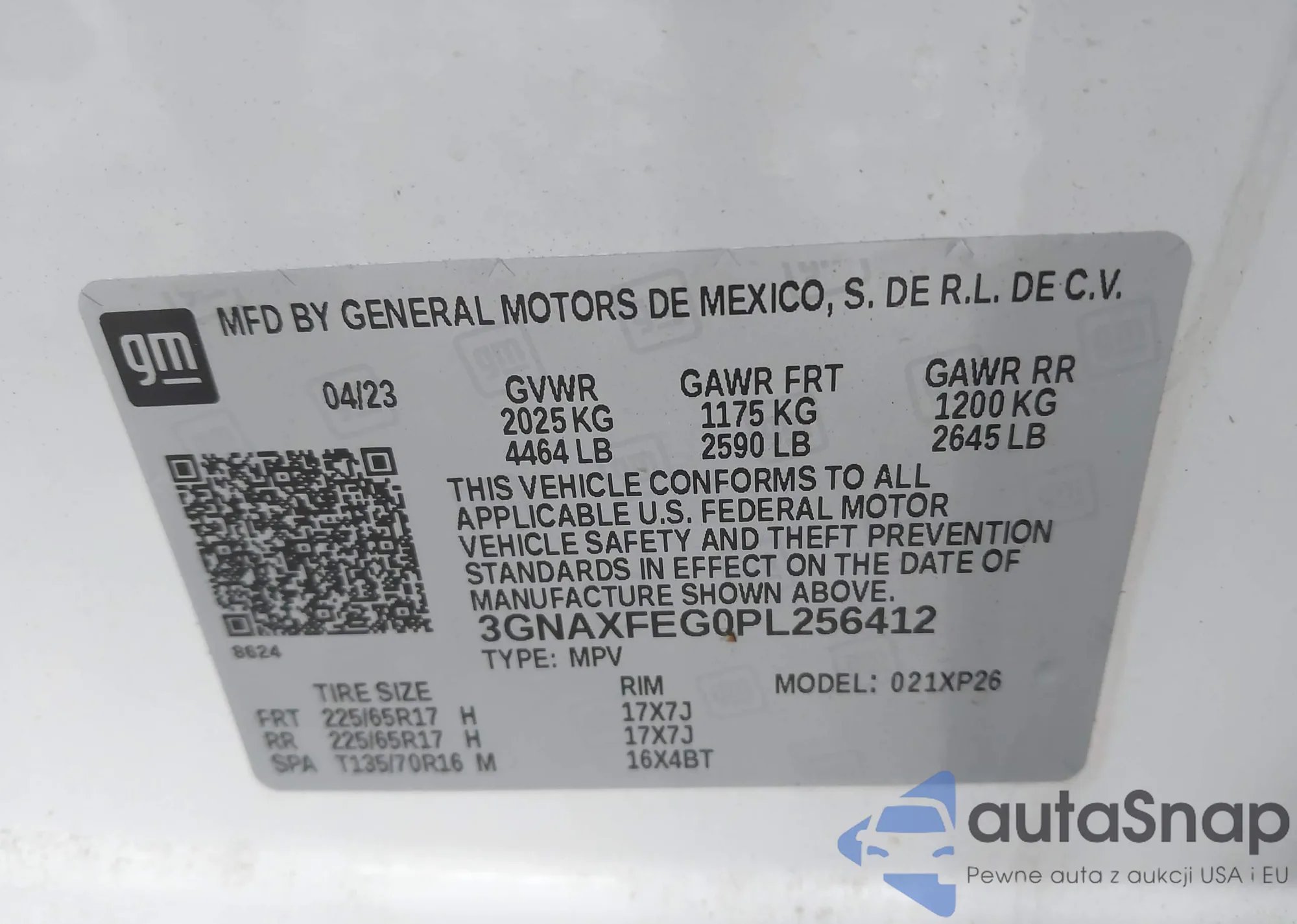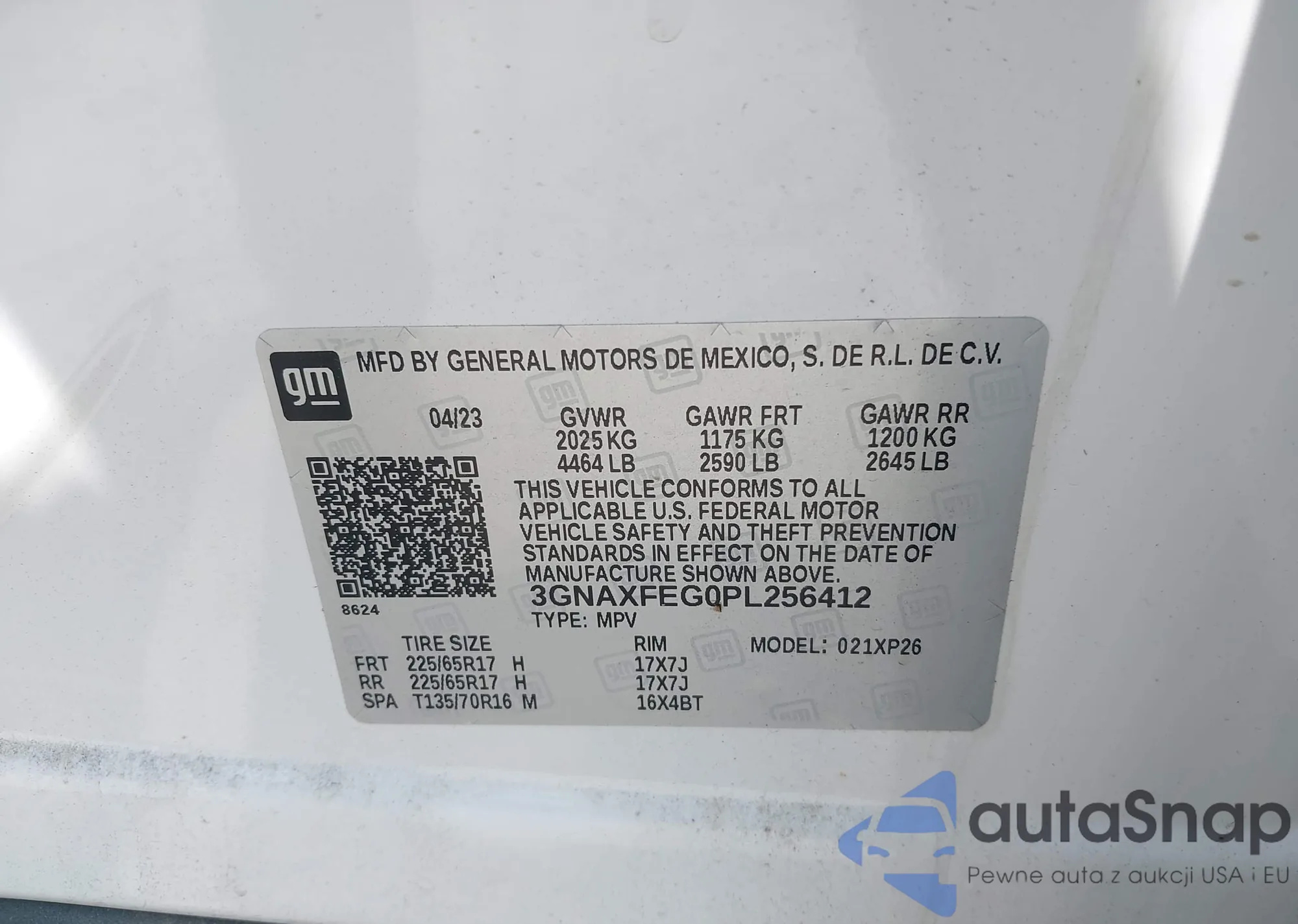 LOT: 42907010 VIN: 3GNAXFEG0PL256412