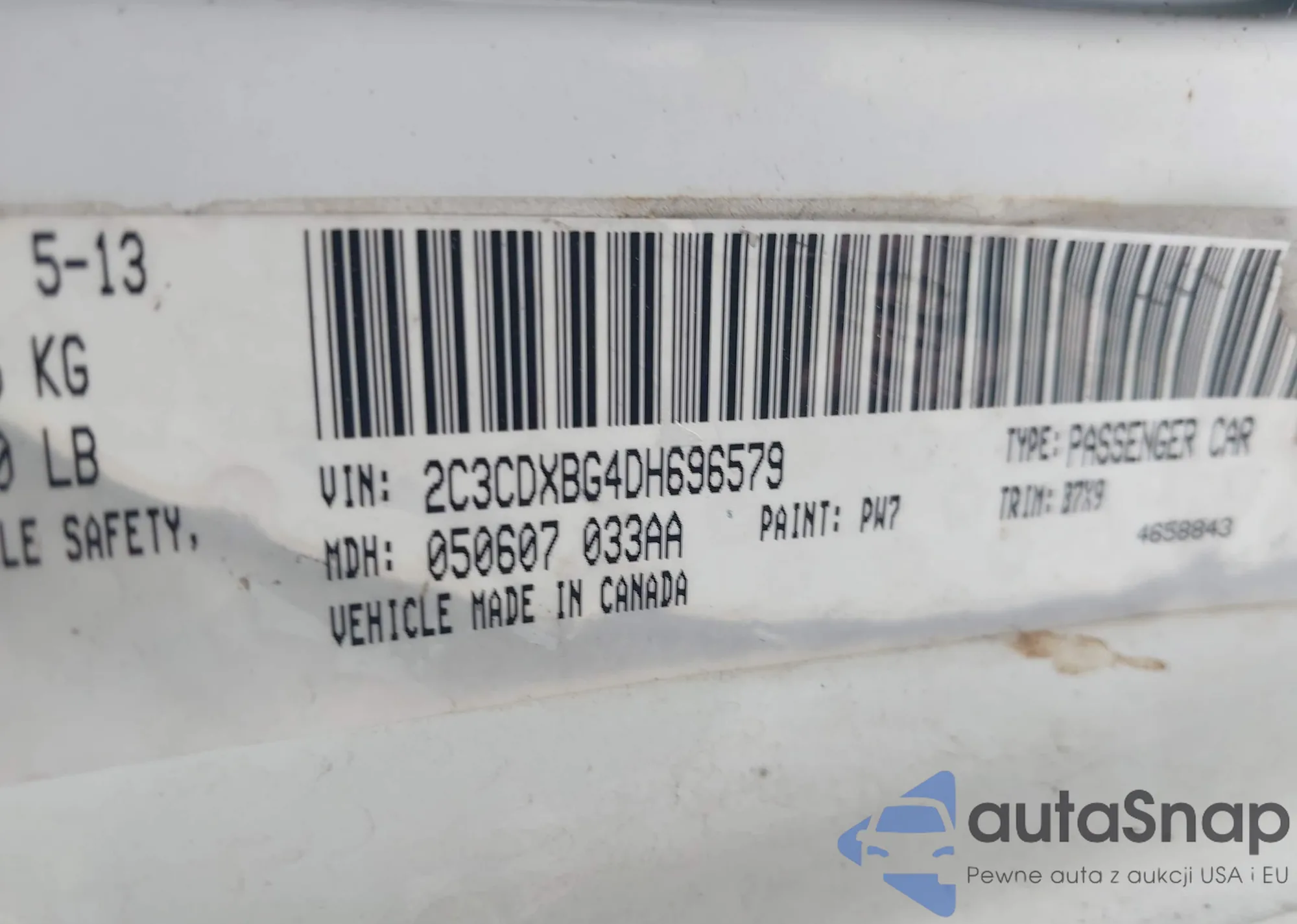 LOT: 42937924 VIN: 2C3CDXBG4DH696579