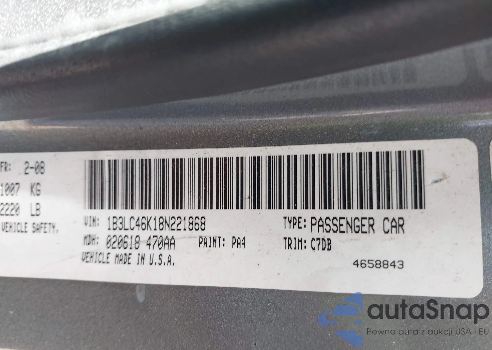 LOT: 42775399 VIN: 1G1JC5SH8E4165900