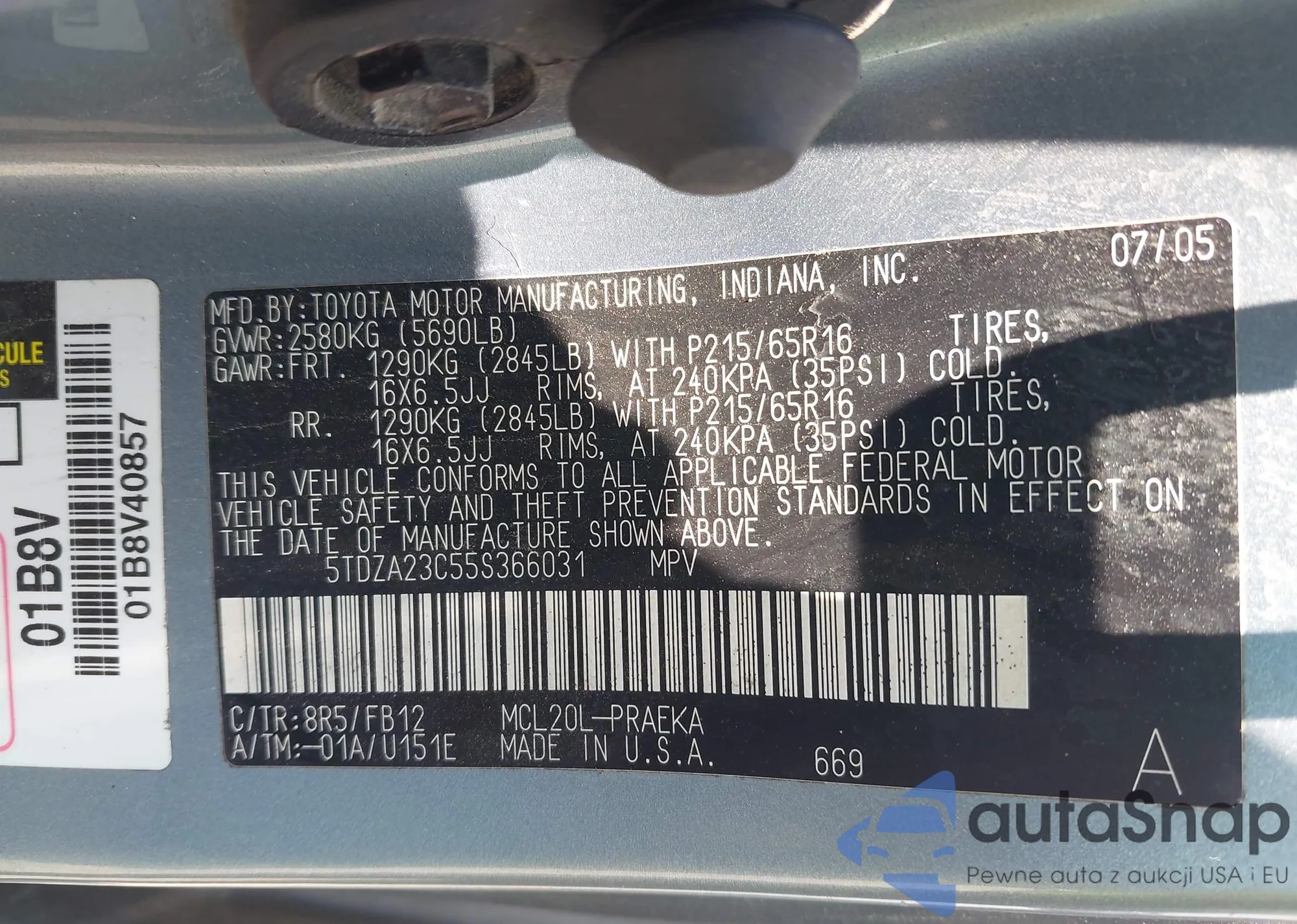 • VIN 5TDGZRBH4NS241575