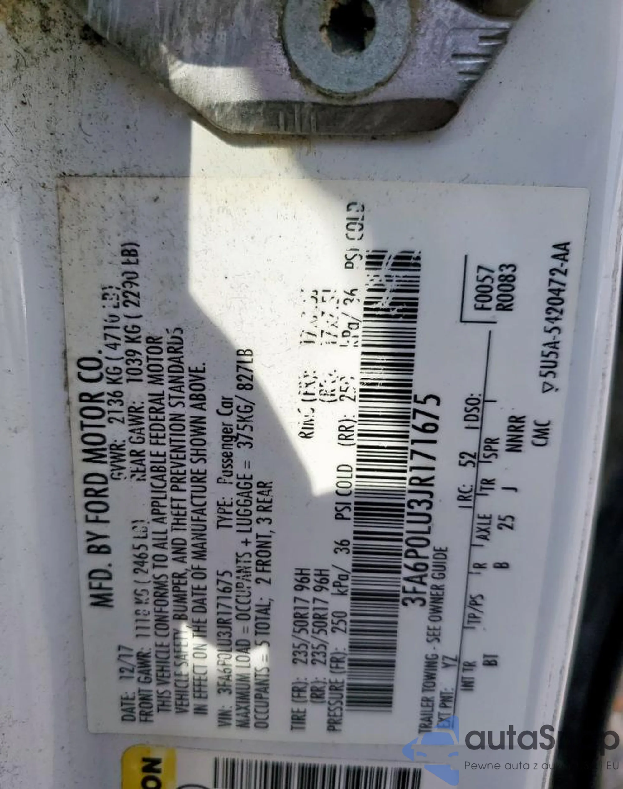 • VIN 3FA6P0LU3JR171675