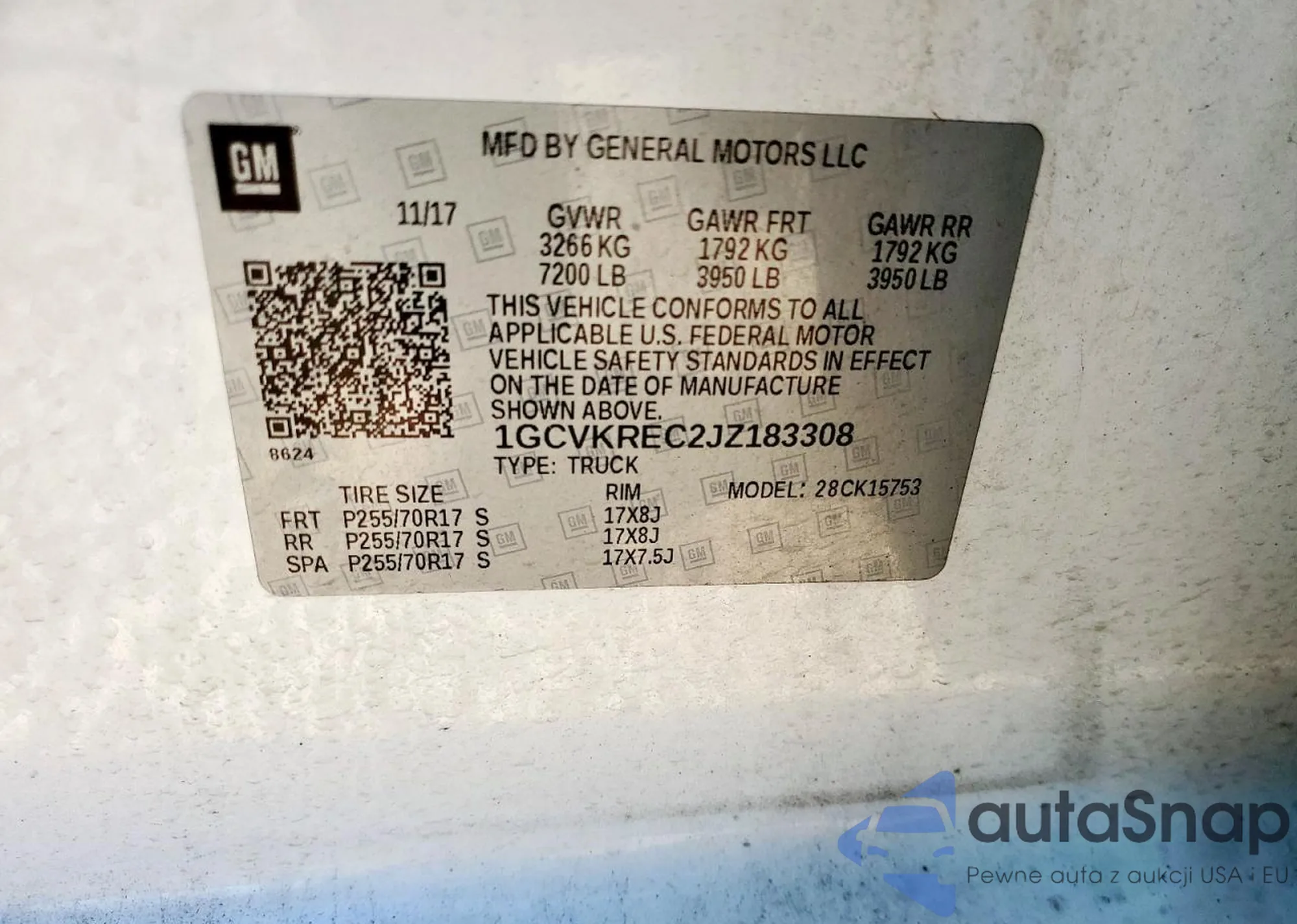 LOT: 80100775 VIN: 1GCVKREC2JZ183308