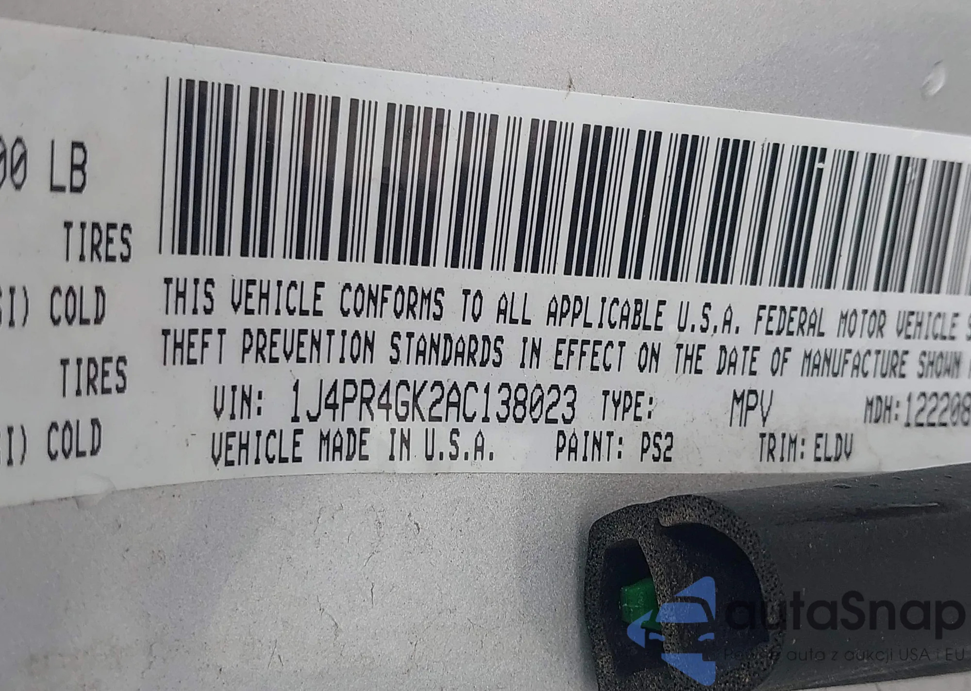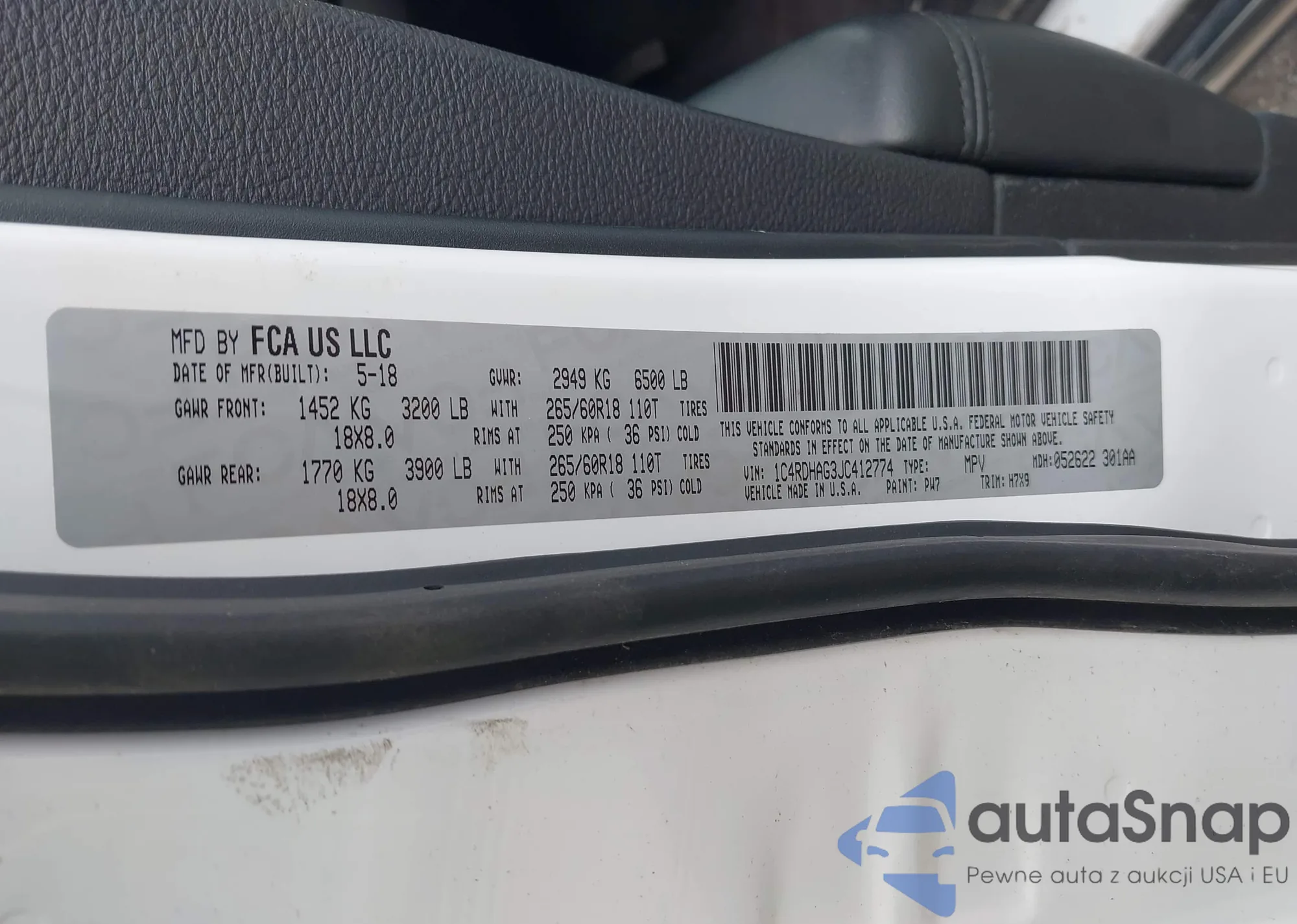 • VIN 1C4RDHAG3JC412774