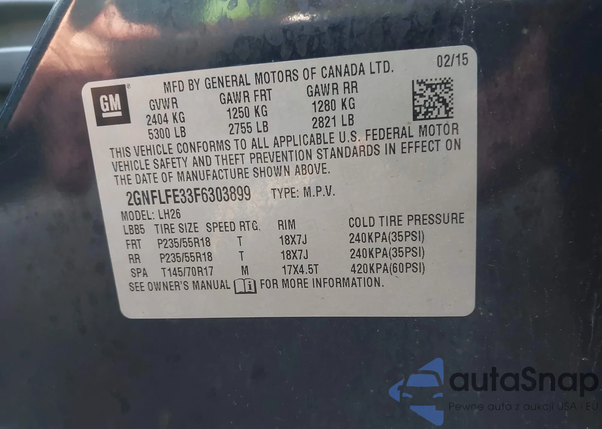LOT: 42634121 VIN: 2GNFLFE33F6303899