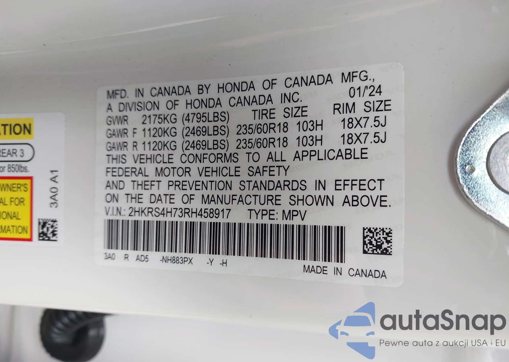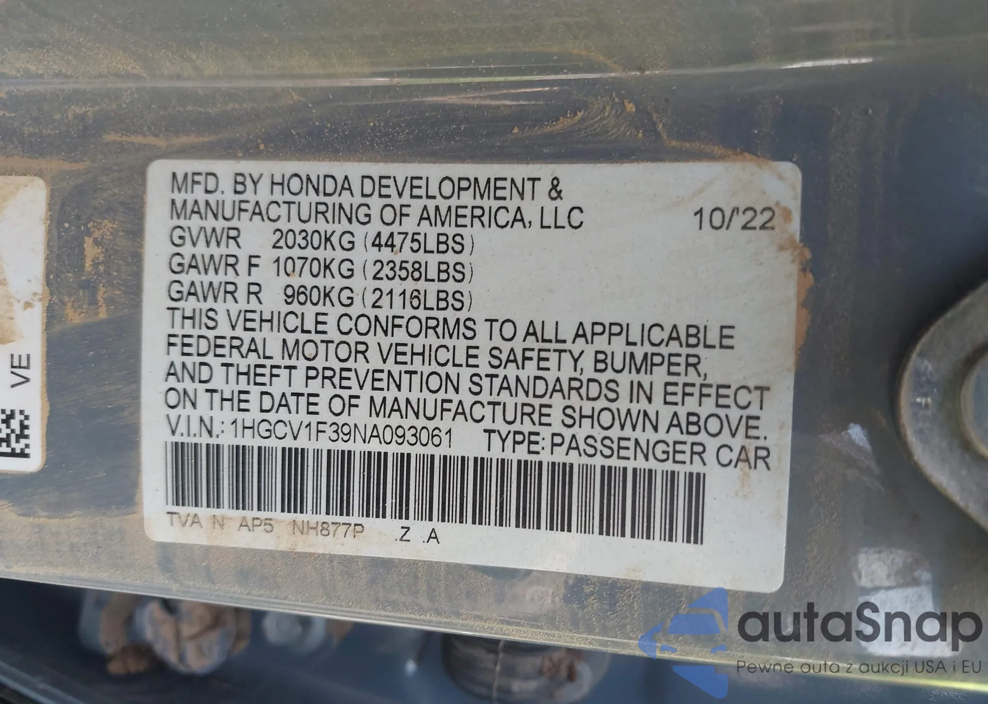 • VIN 1HGCV1F39NA093061