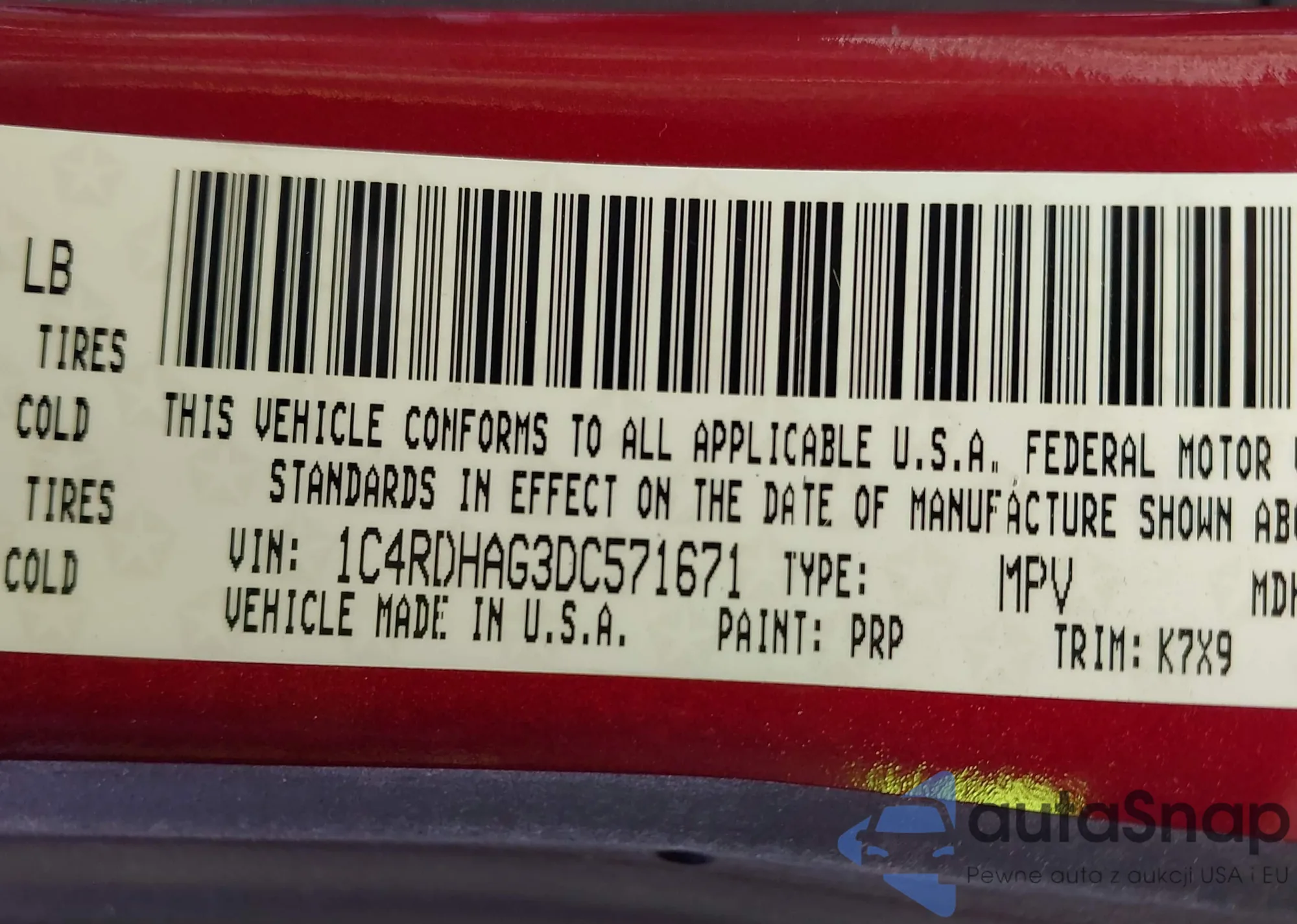 • VIN 1C4RDHAG3DC571671