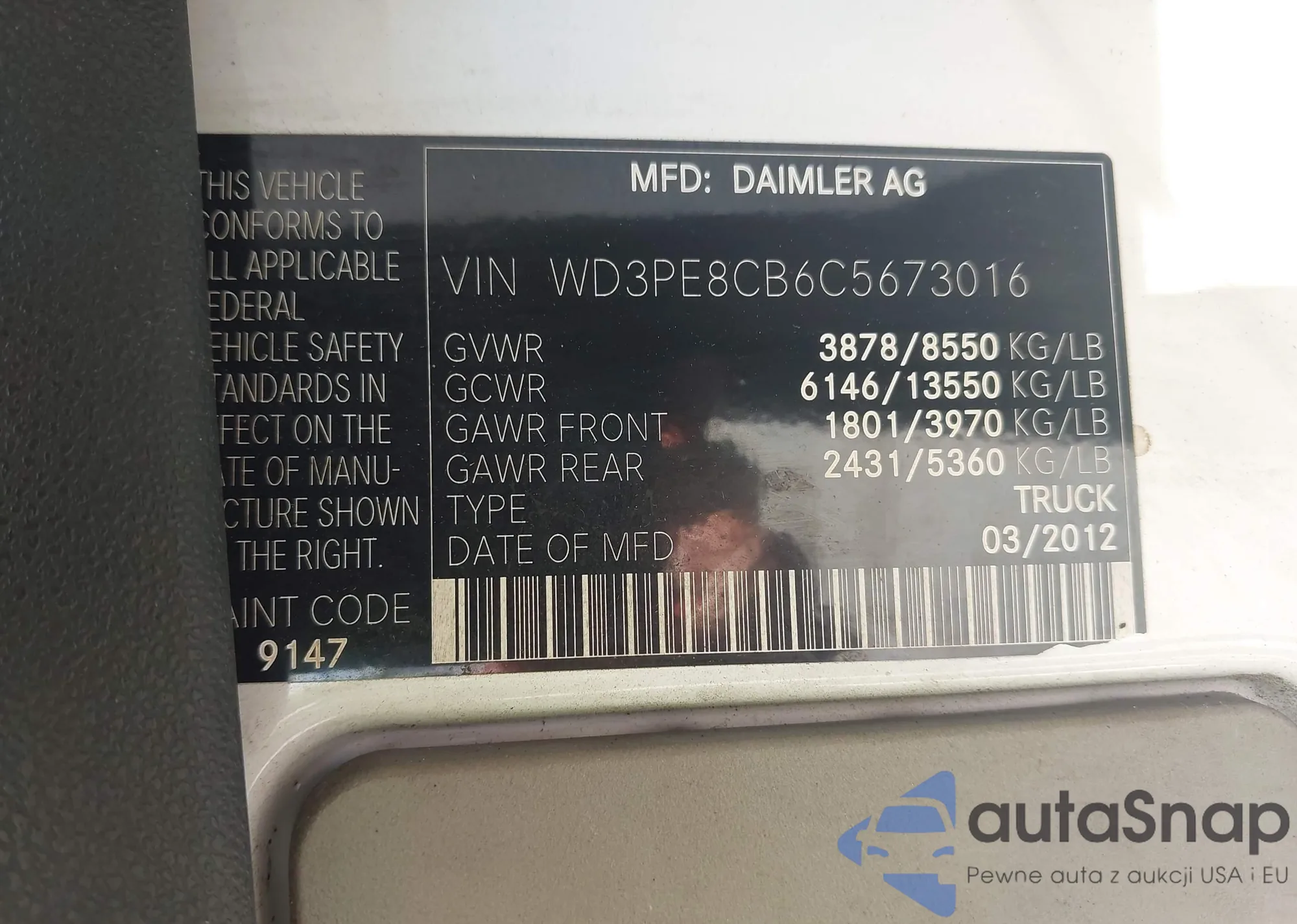 LOT: 43019535 VIN: WD3PE8CB6C5673016