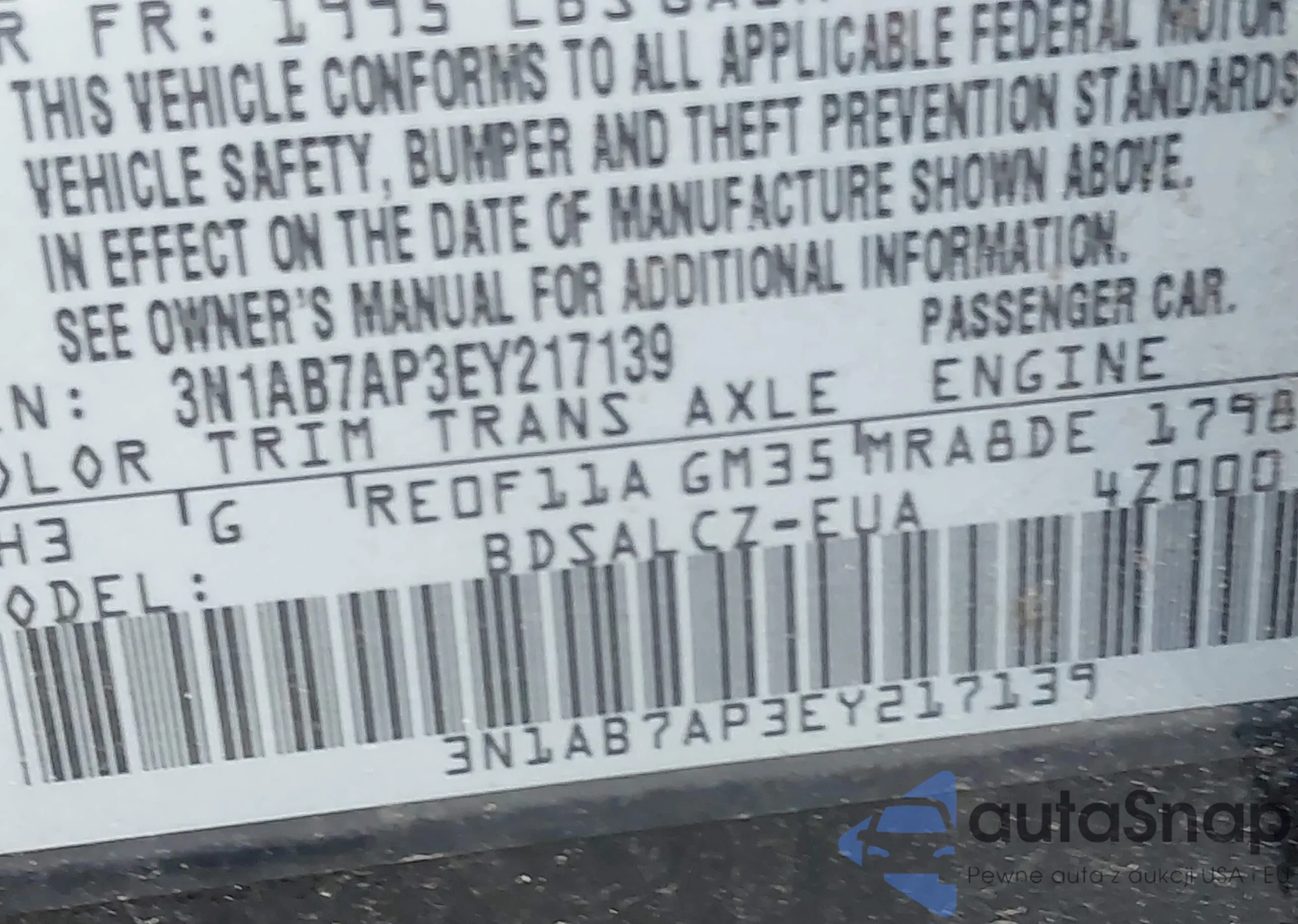 LOT: 43177579 VIN: WAUPN94E09N001401