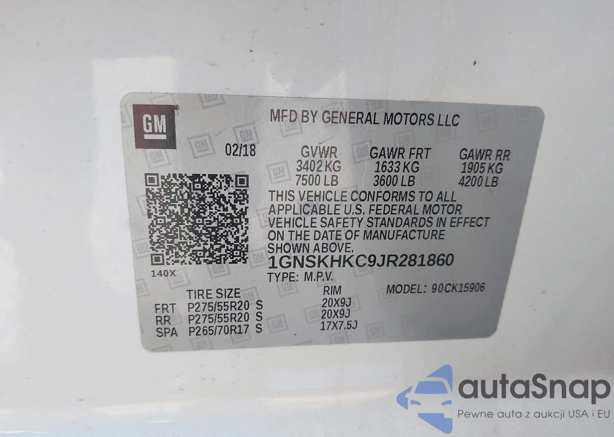 LOT: 43140464 VIN: 1GNSKHKC9JR281860