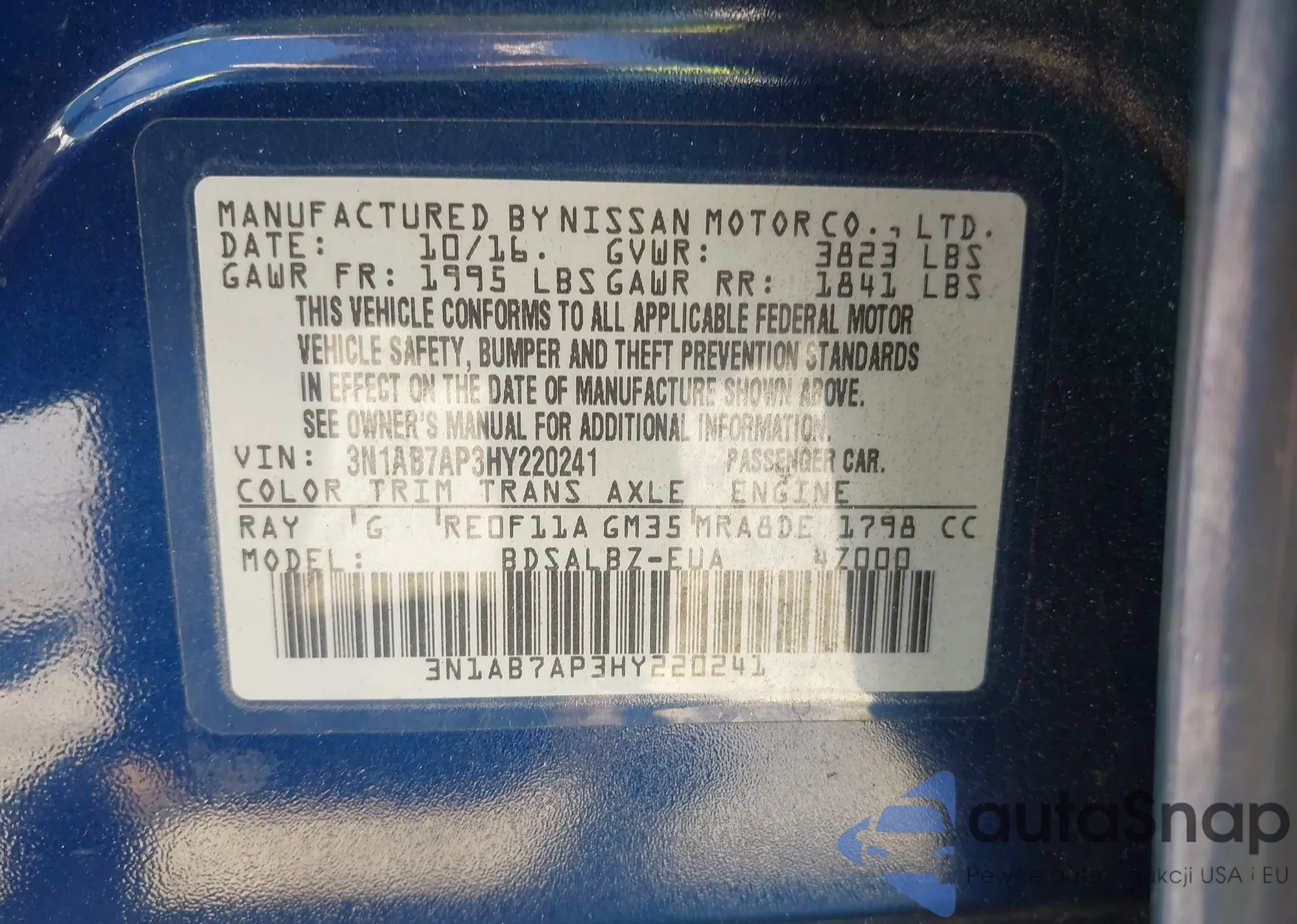 • VIN 3N1AB7AP3HY220241