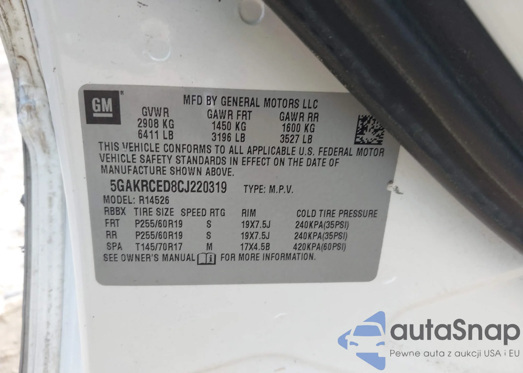• VIN 5GAKRCED8CJ220319