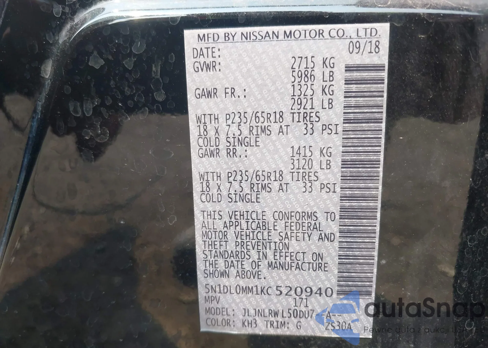 • VIN 5N1DL0MM1KC520940