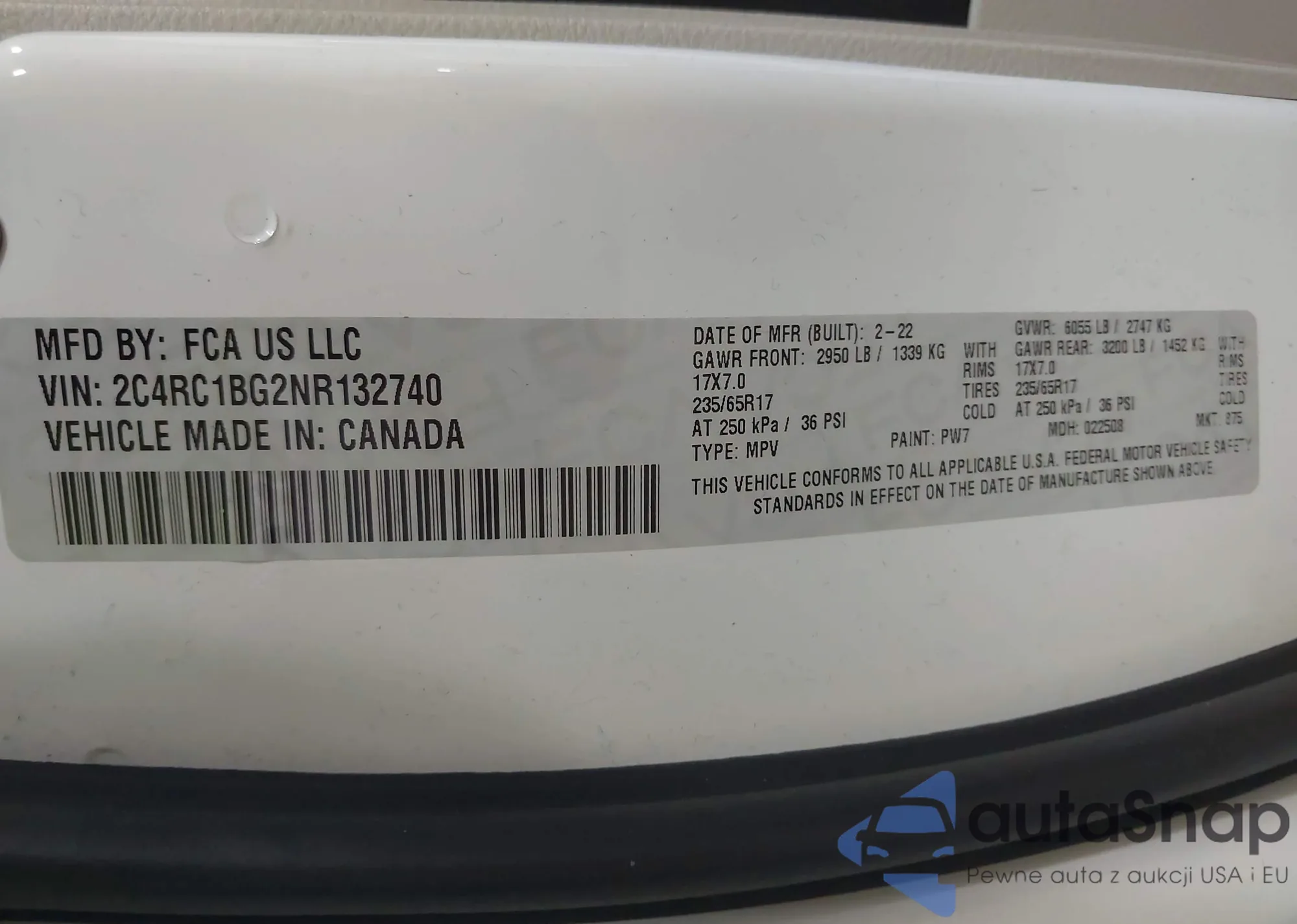 • VIN 2C4RC1BG2NR132740