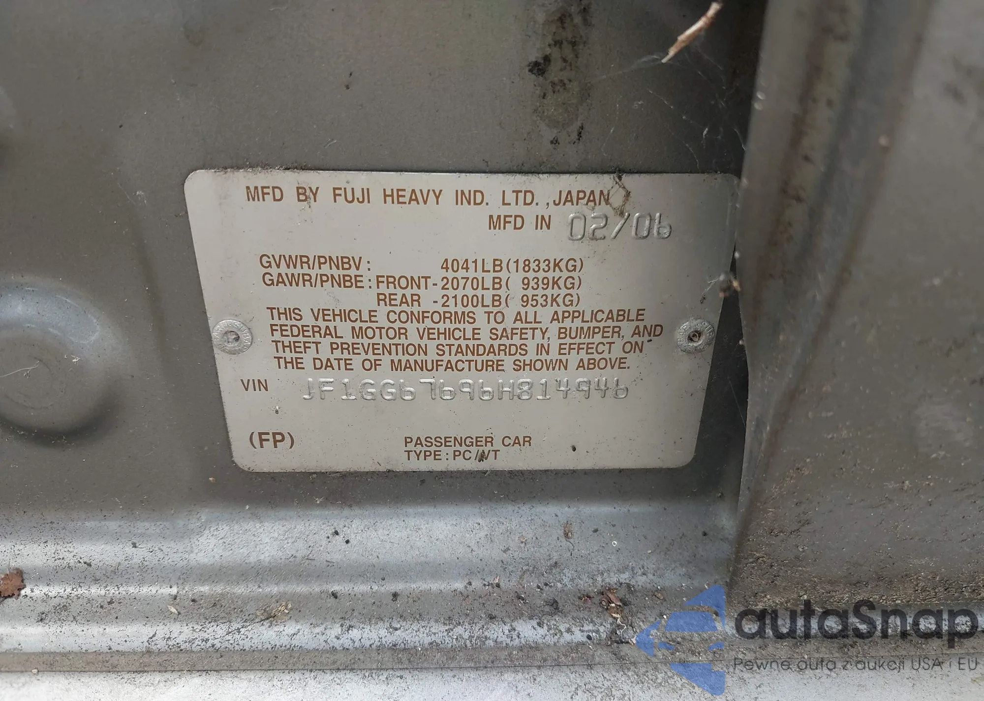 LOT: 43201725 VIN: JF1GG67696H814946