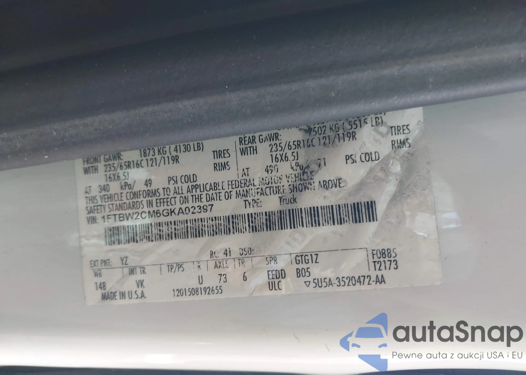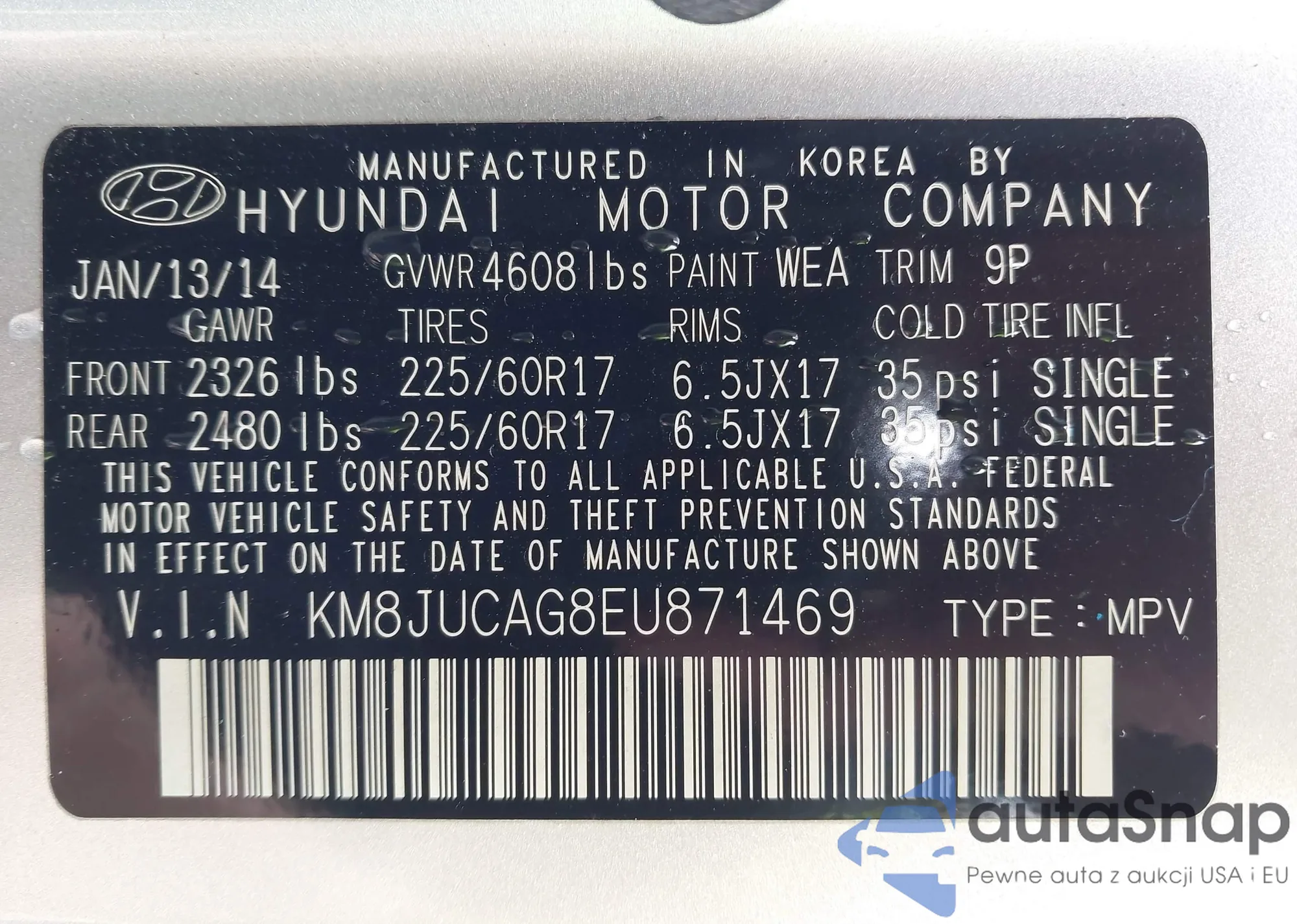 • VIN 5TFAZ5CN3MX104459