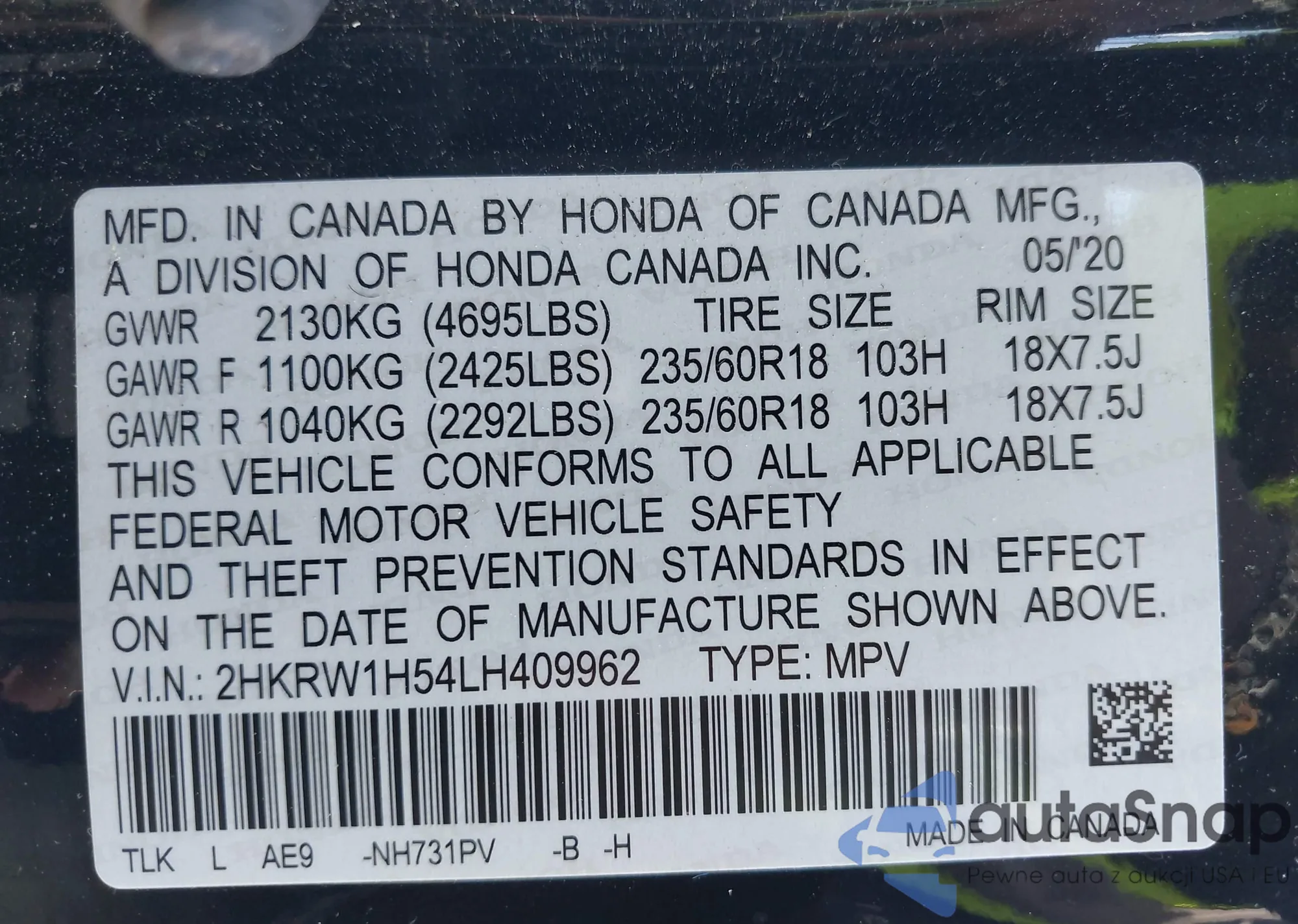 • VIN 3TMKB5FN6RM020928
