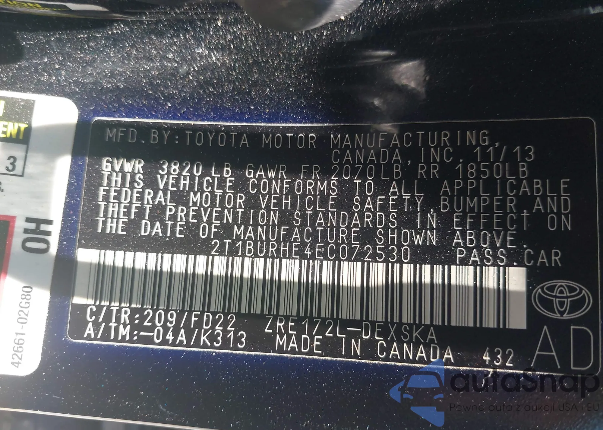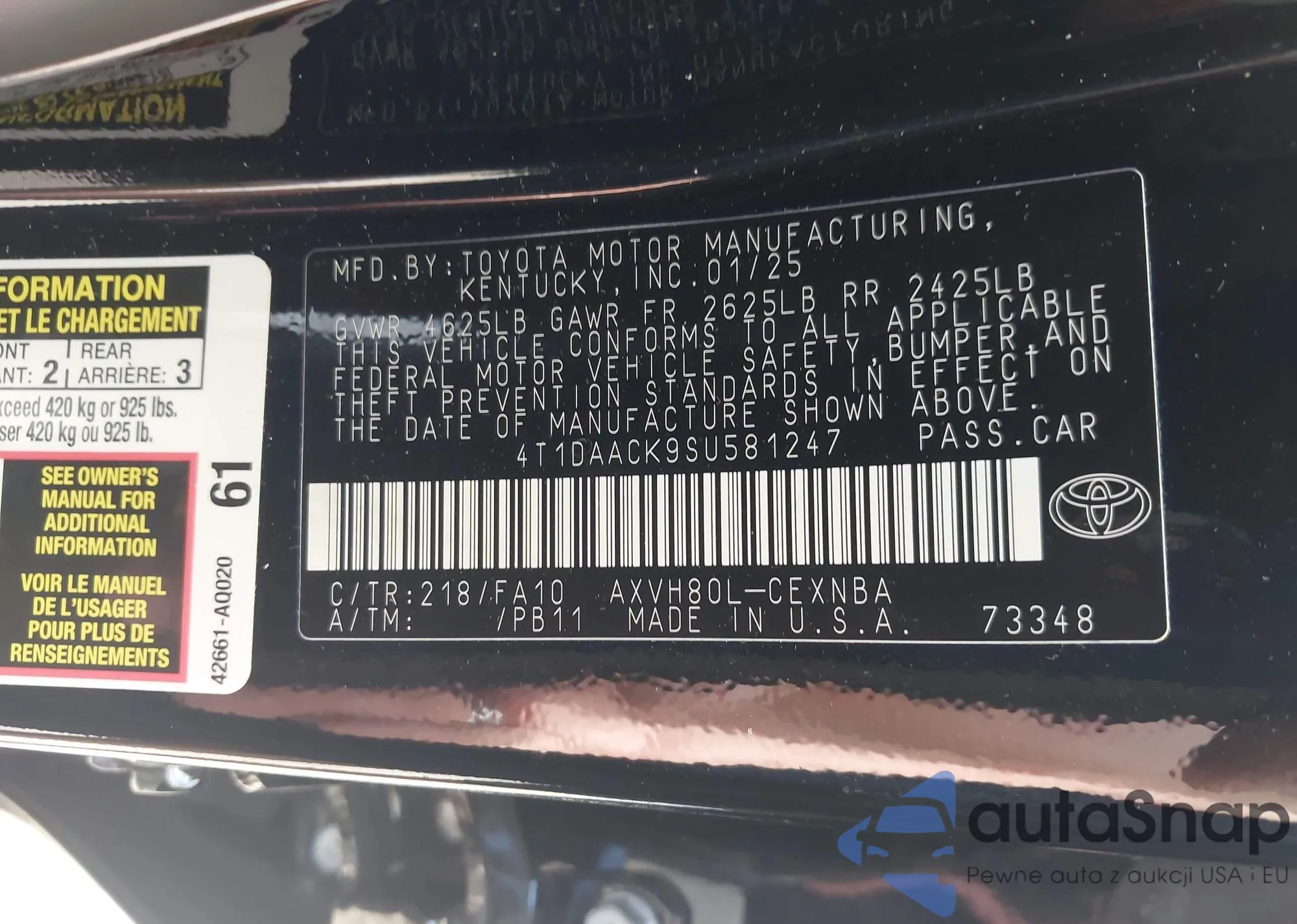 • VIN 4T1DAACK9SU581247
