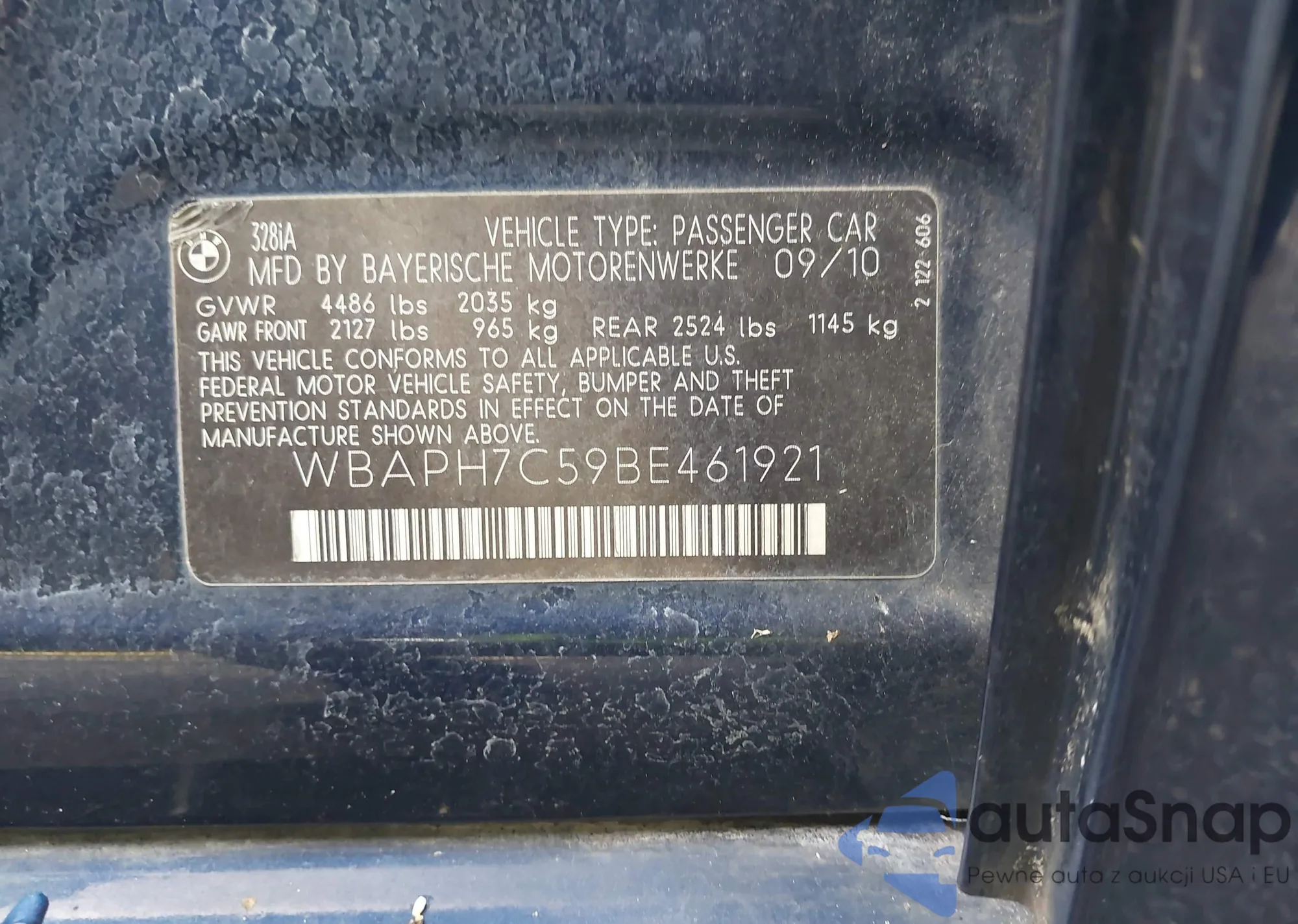 LOT: 43170296 VIN: WBAPH7C59BE461921