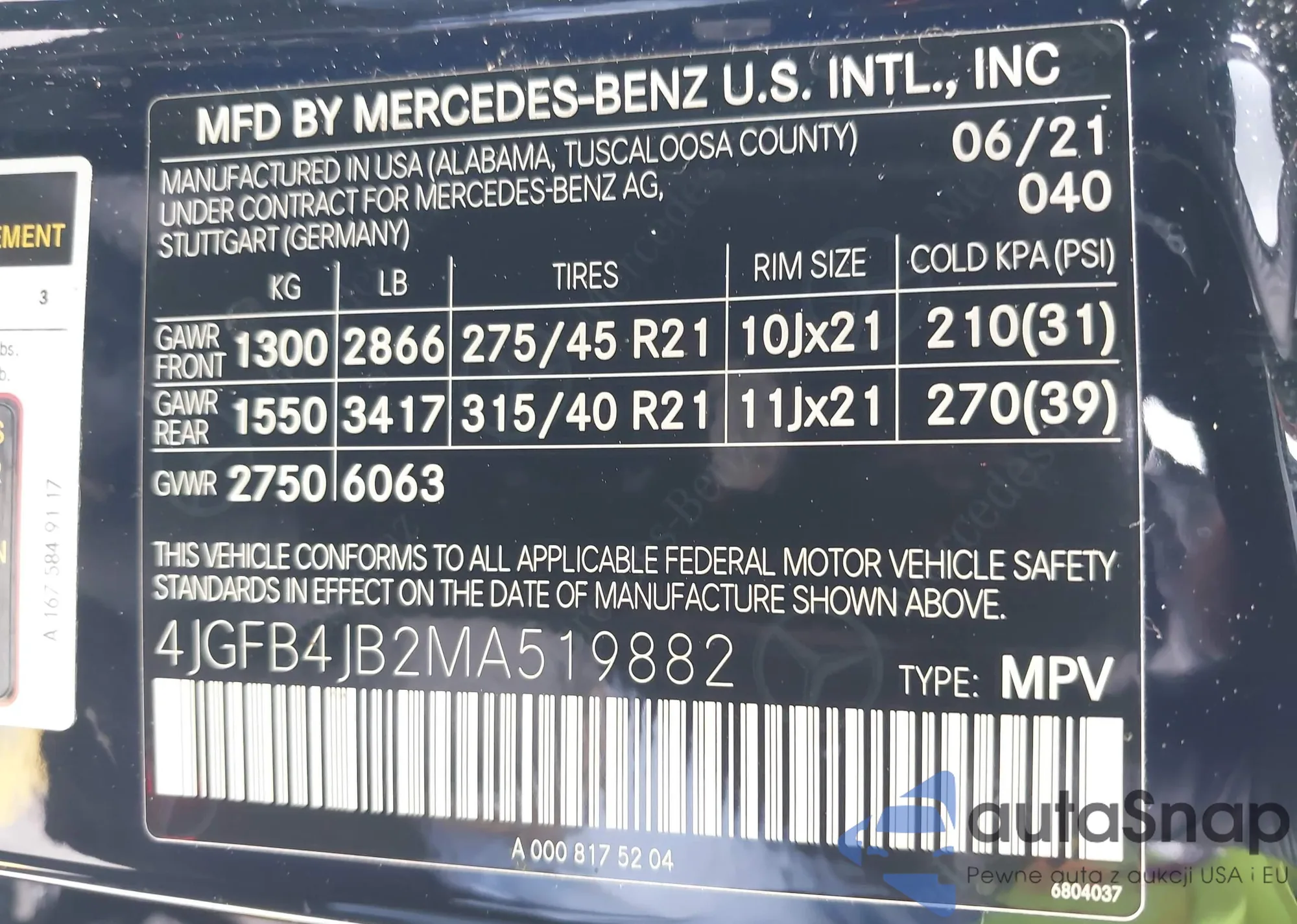 • VIN 4JGFB4JB2MA519882