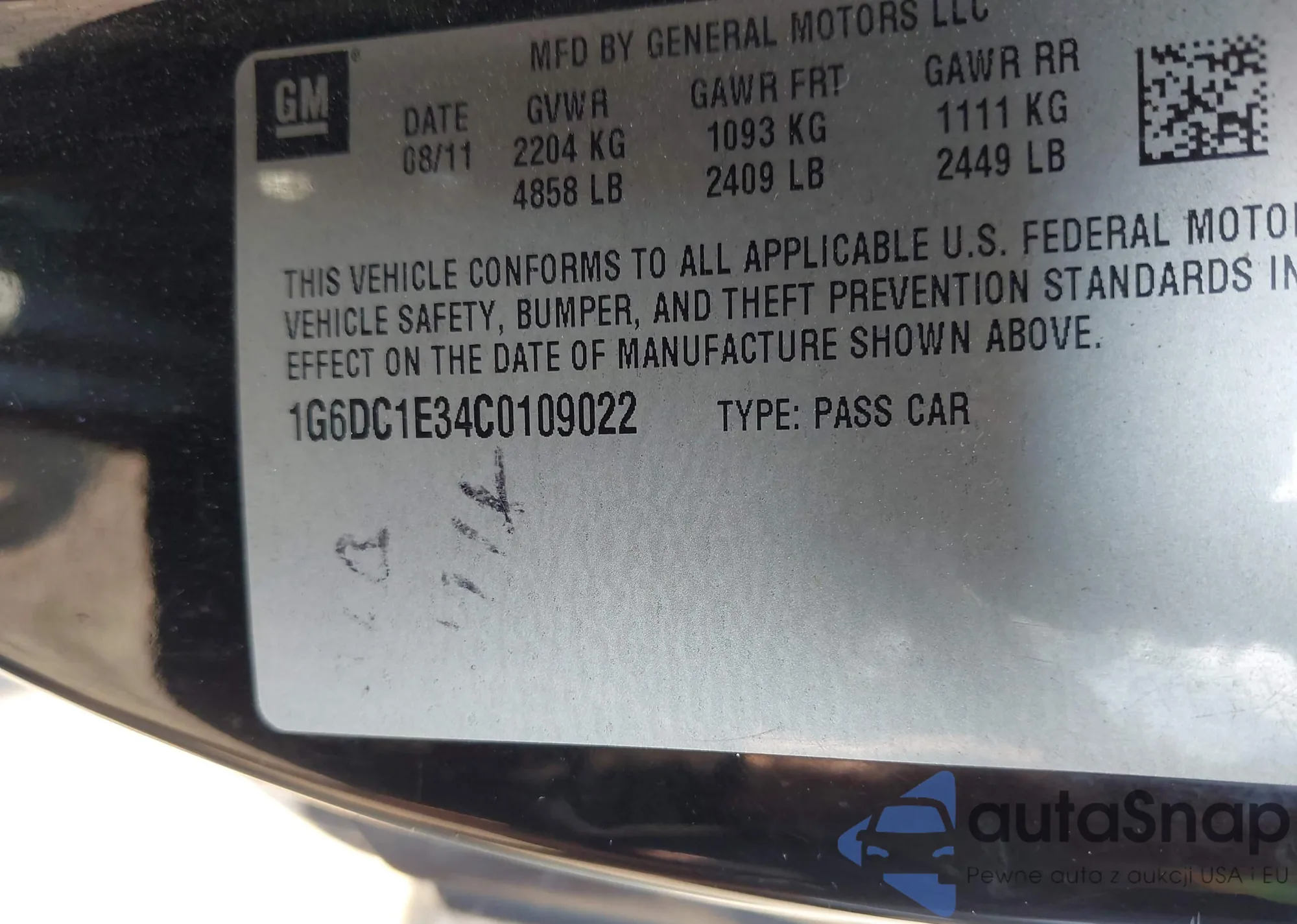 • VIN 1G6DC1E34C0109022