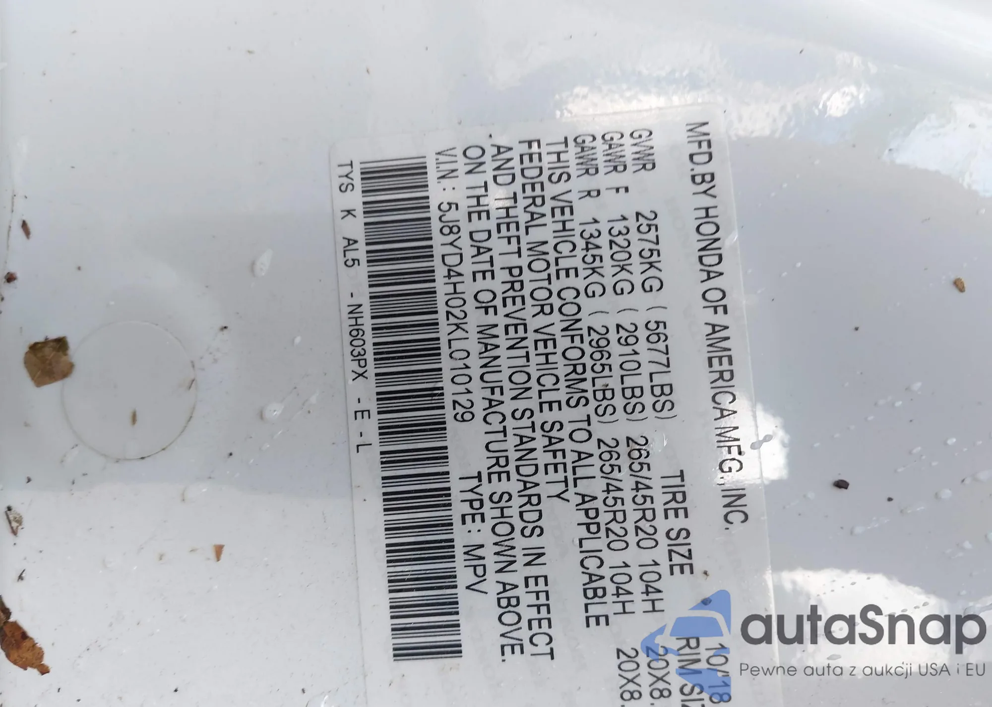 LOT: 43050152 VIN: 1HGFA165X9L027798