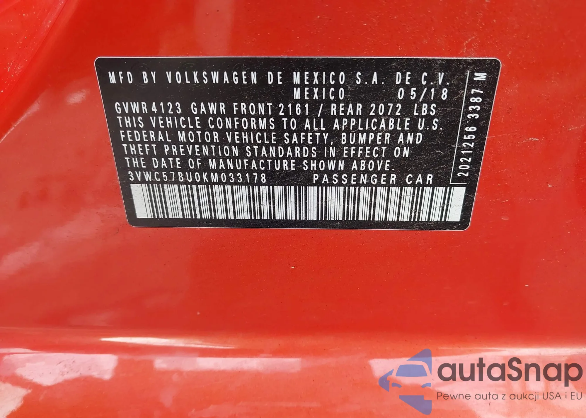 • VIN 3VWC57BU0KM033178