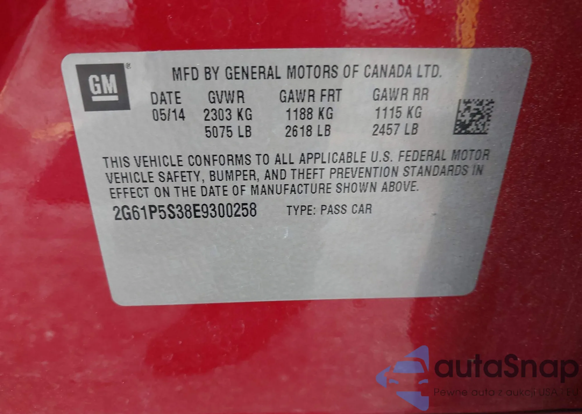 • VIN 2G61P5S38E9300258