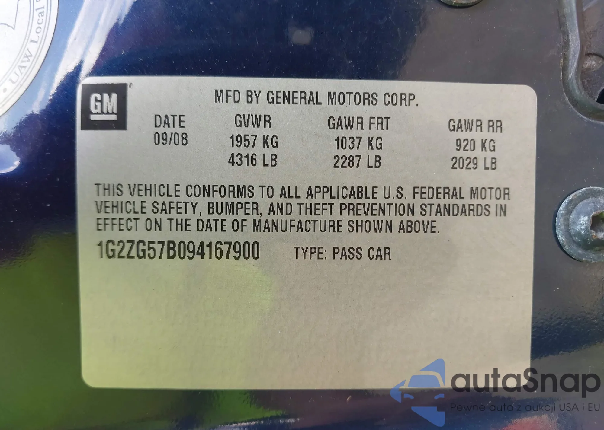 LOT: 43097366 VIN: 1G2ZG57B094167900
