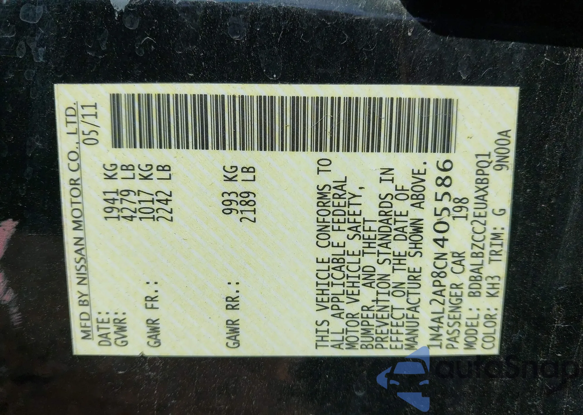 LOT: 43146226 VIN: 1N4AL2AP8CN405586