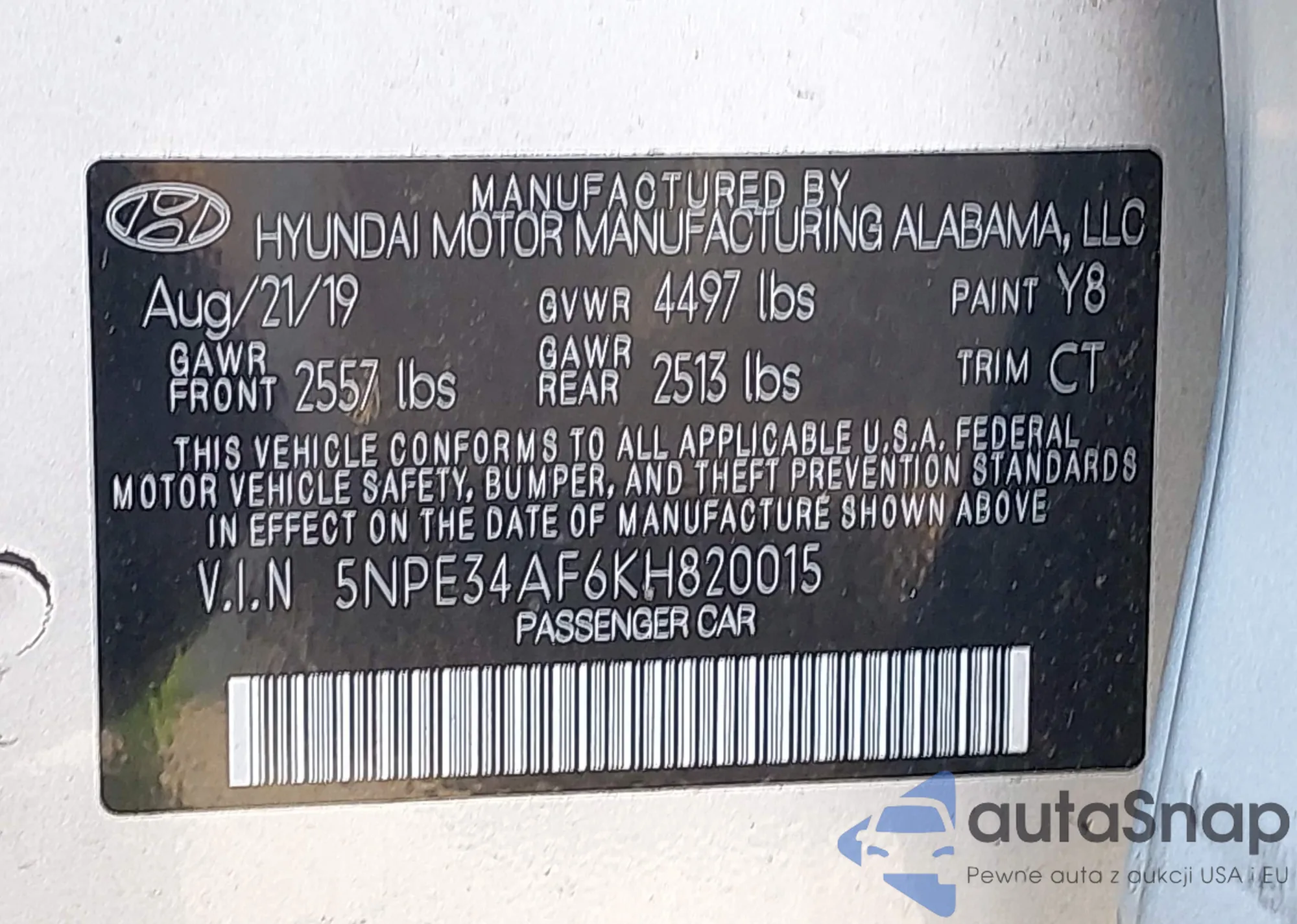 • VIN 5NPE34AF6KH820015
