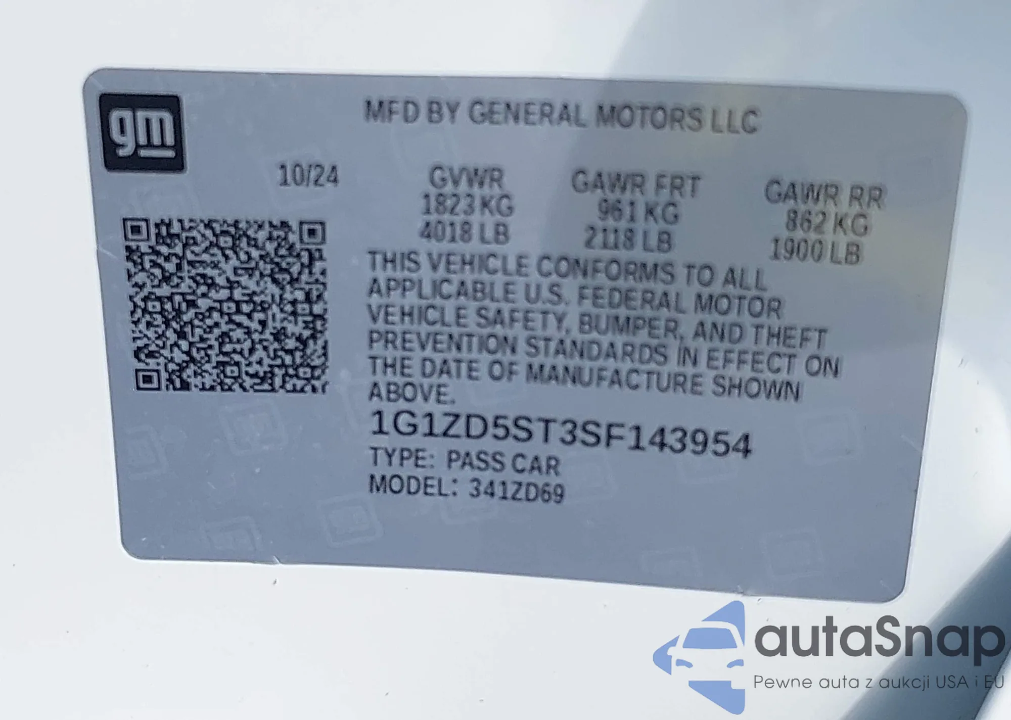 • VIN 1G1ZD5ST3SF143954