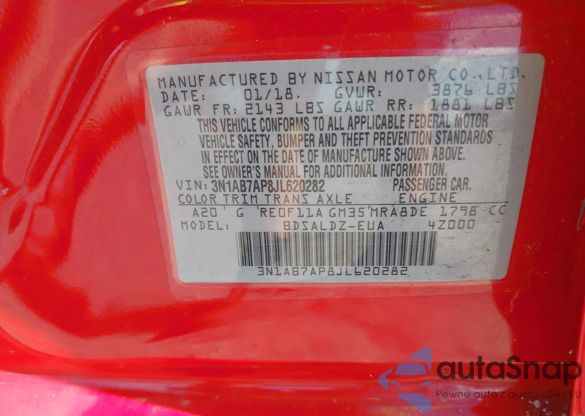 LOT: 43237932 VIN: 3N1AB8CV9RY252825