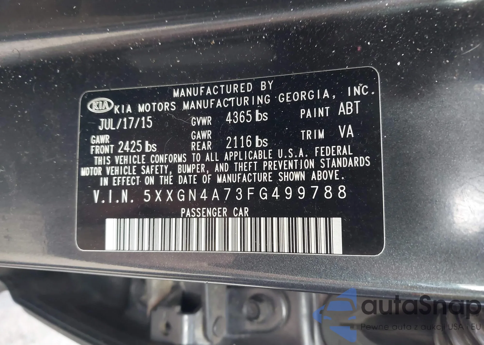 LOT: 43169266 VIN: 5XXGN4A73FG499788