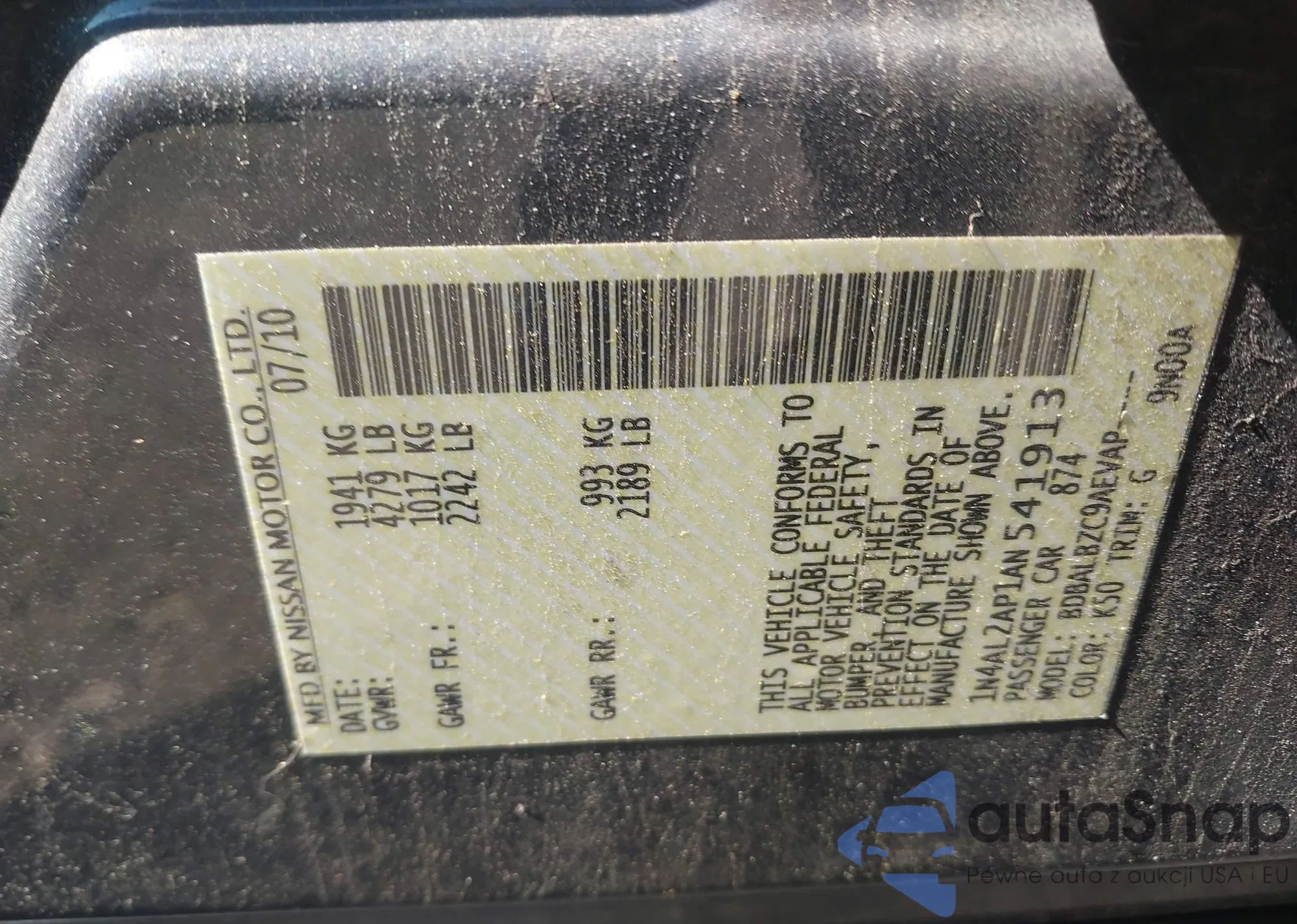 • VIN 1N4AL2AP1AN541913