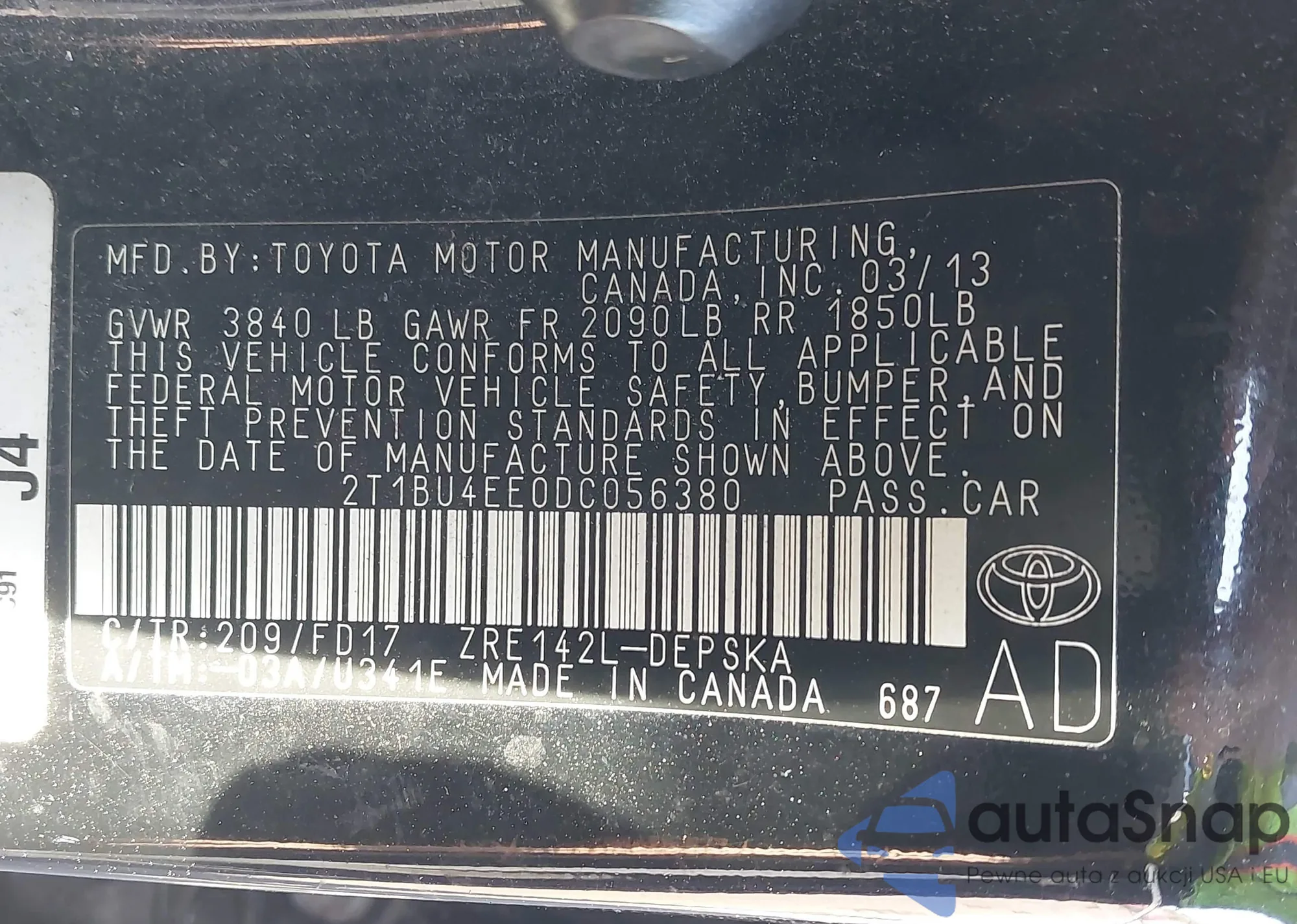 • VIN 2T1BU4EE0DC056380