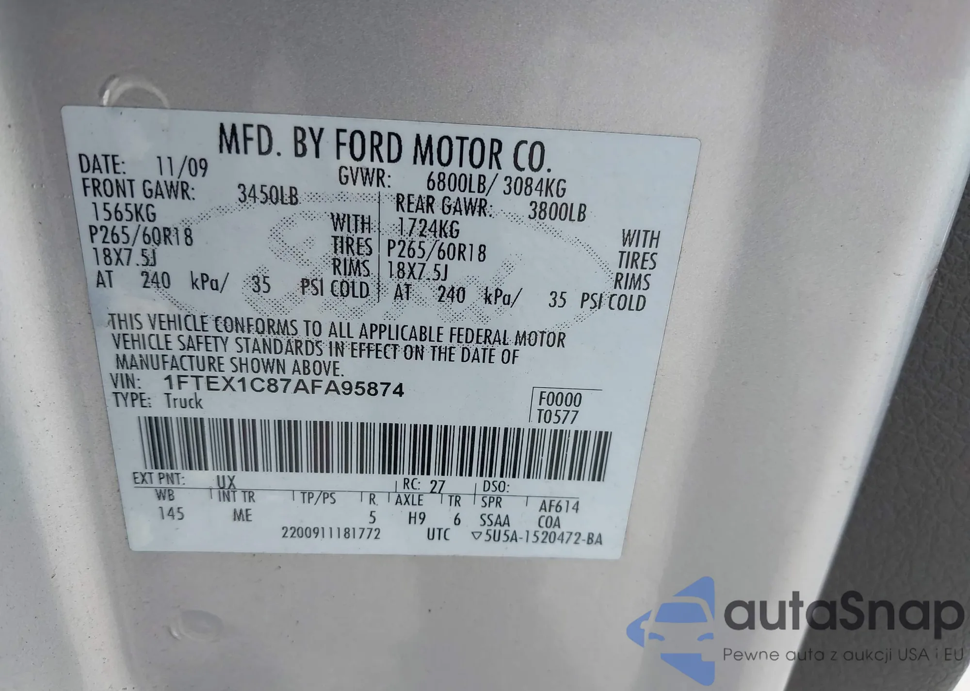 • VIN 1FTEX1C87AFA95874