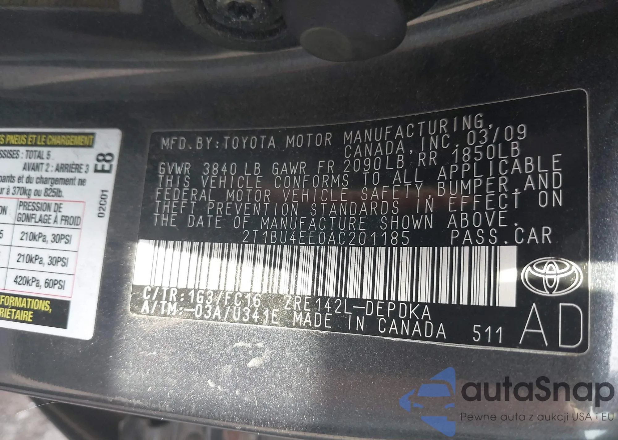 LOT: 43230942 VIN: 2T1BU4EE0AC201185
