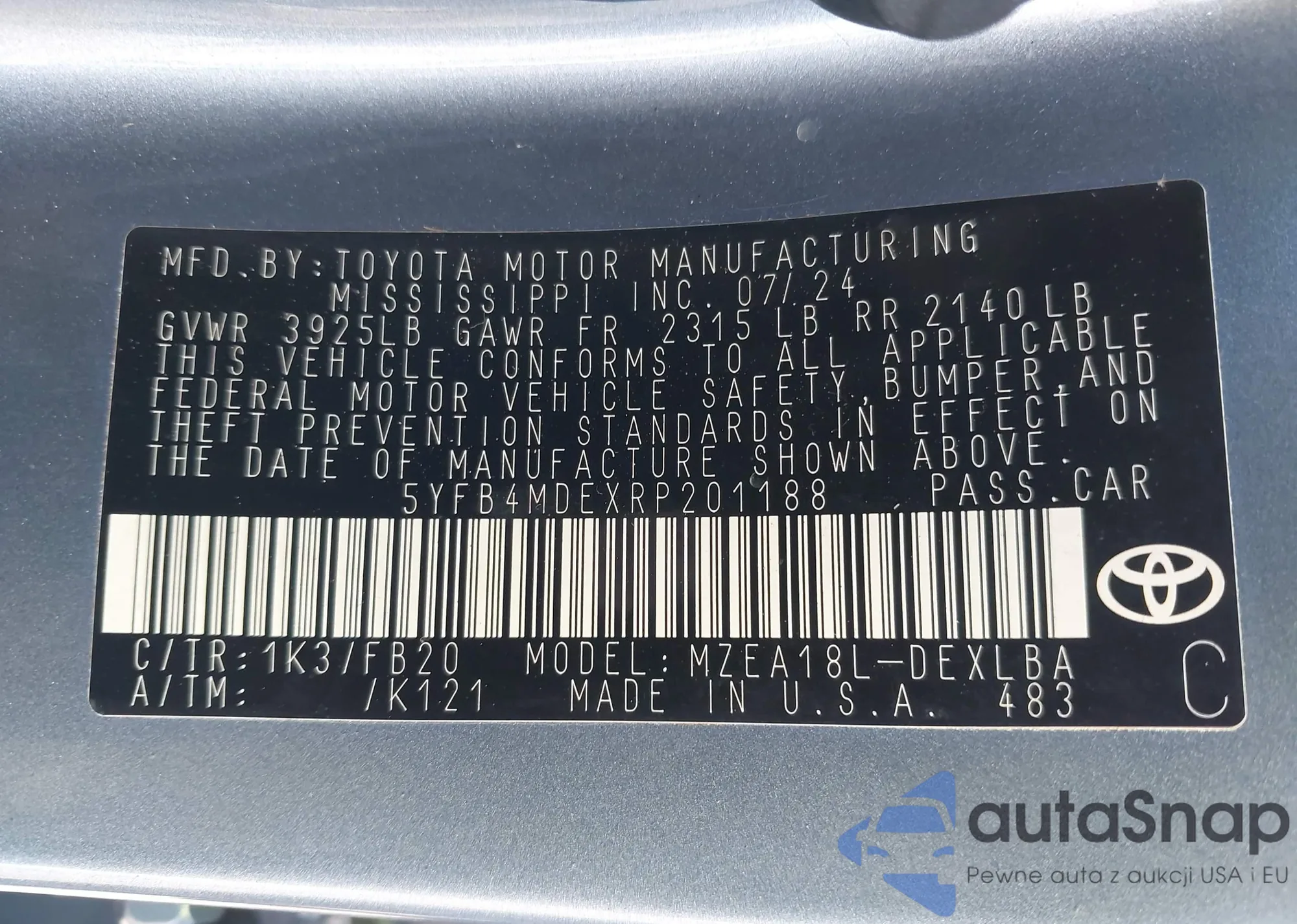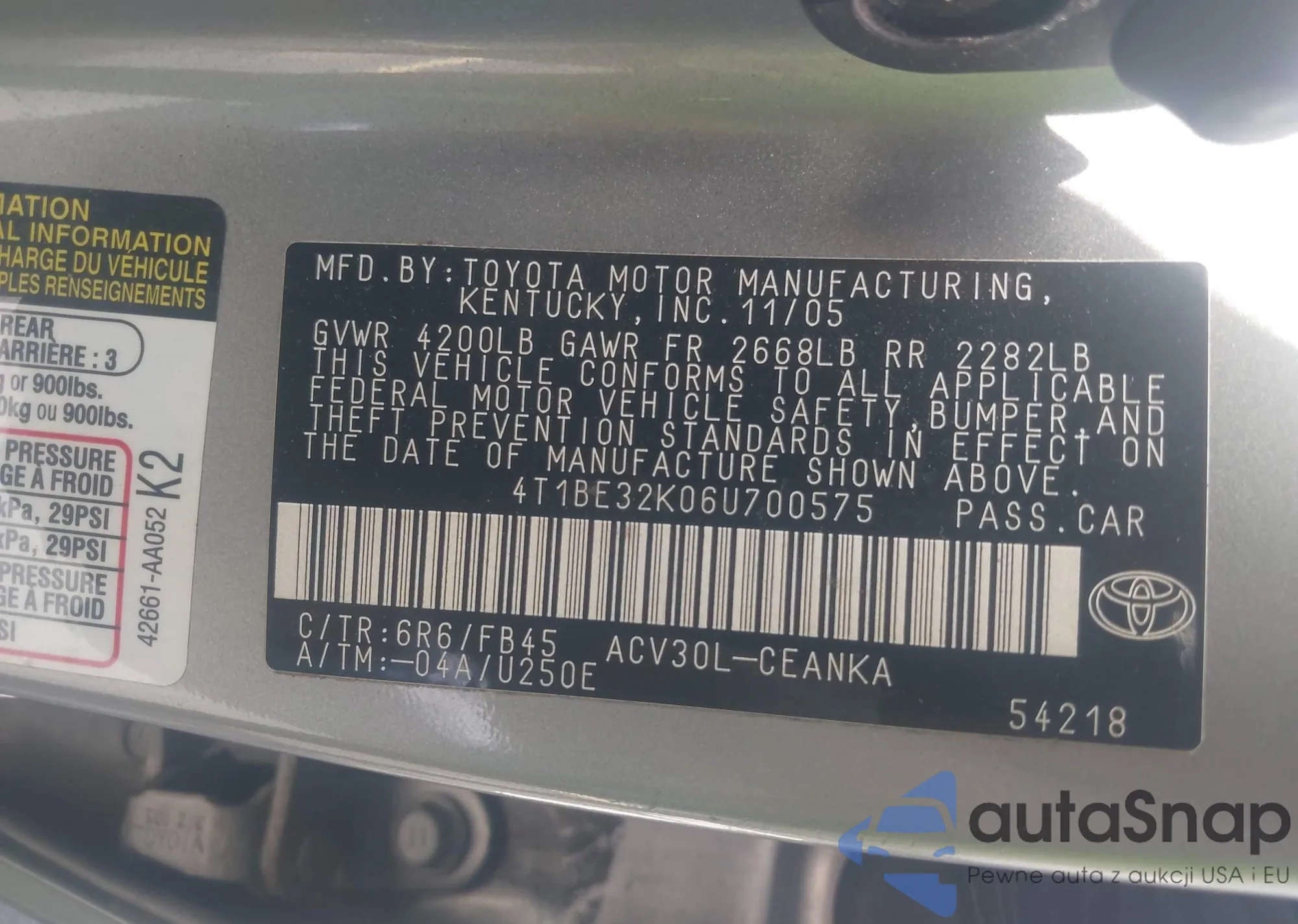 LOT: 43059336 VIN: 1NXBR32E97Z906834