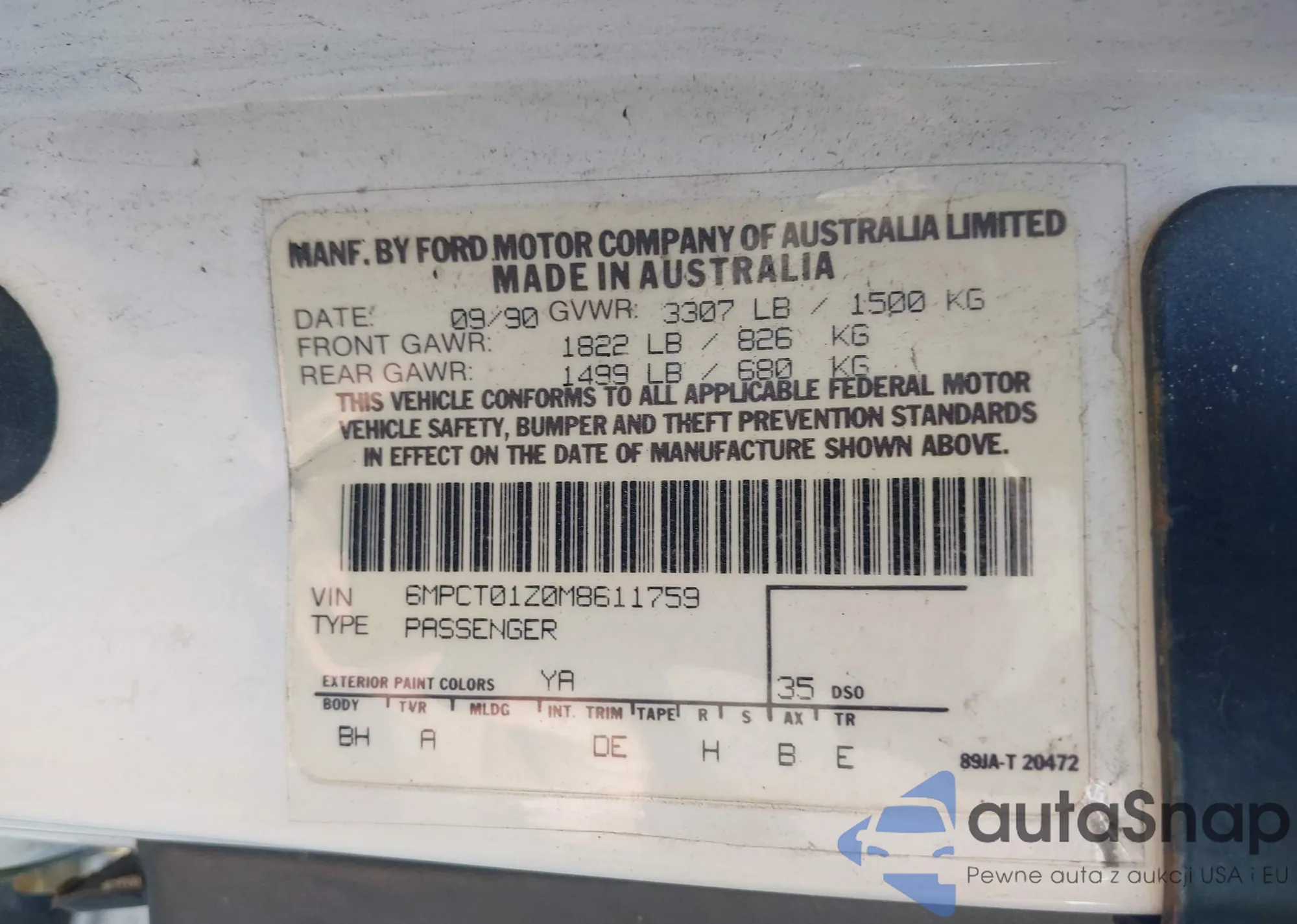 • VIN 6MPCT01Z0M8611759