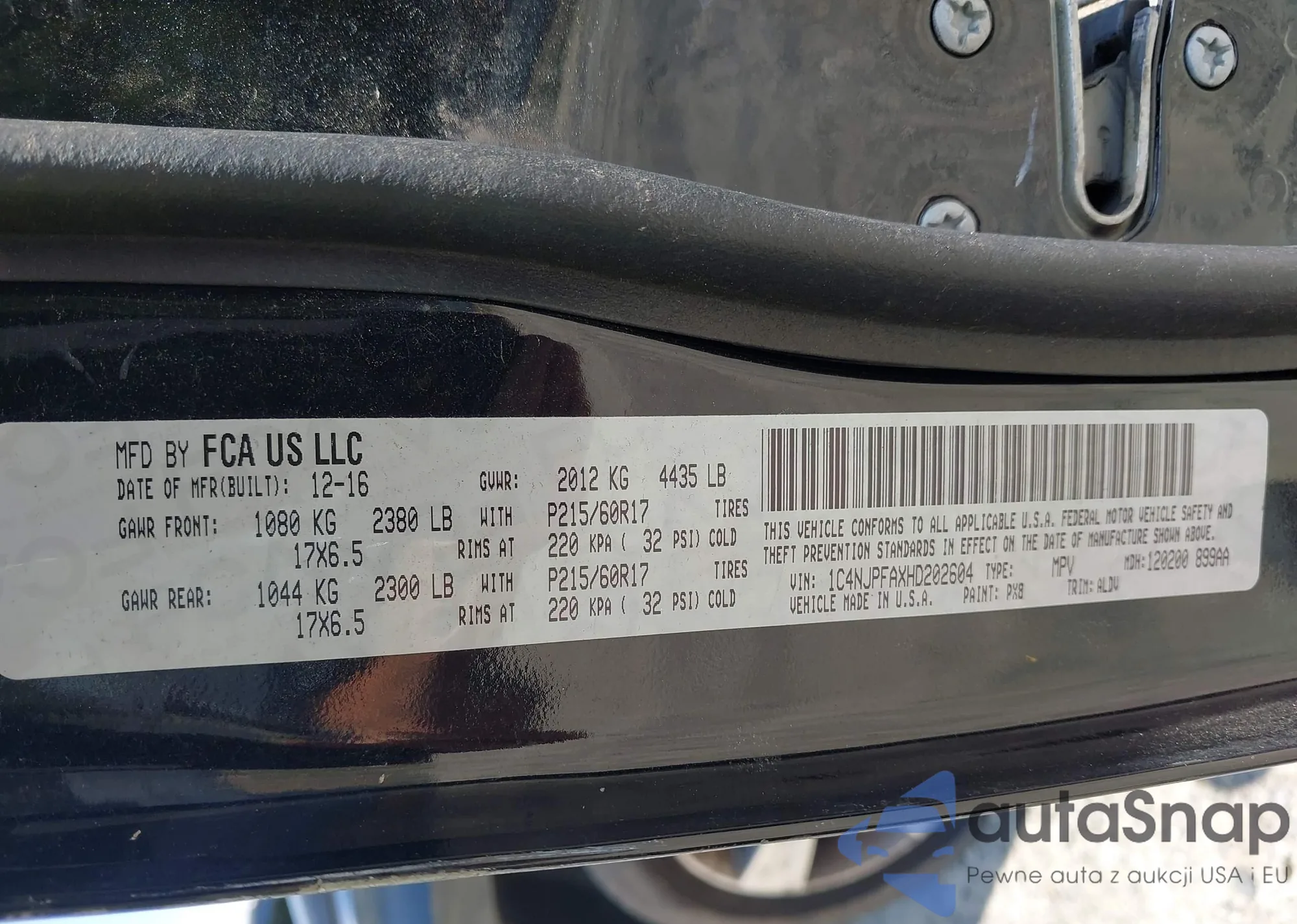 • VIN 1C4PJLCB8KD172105