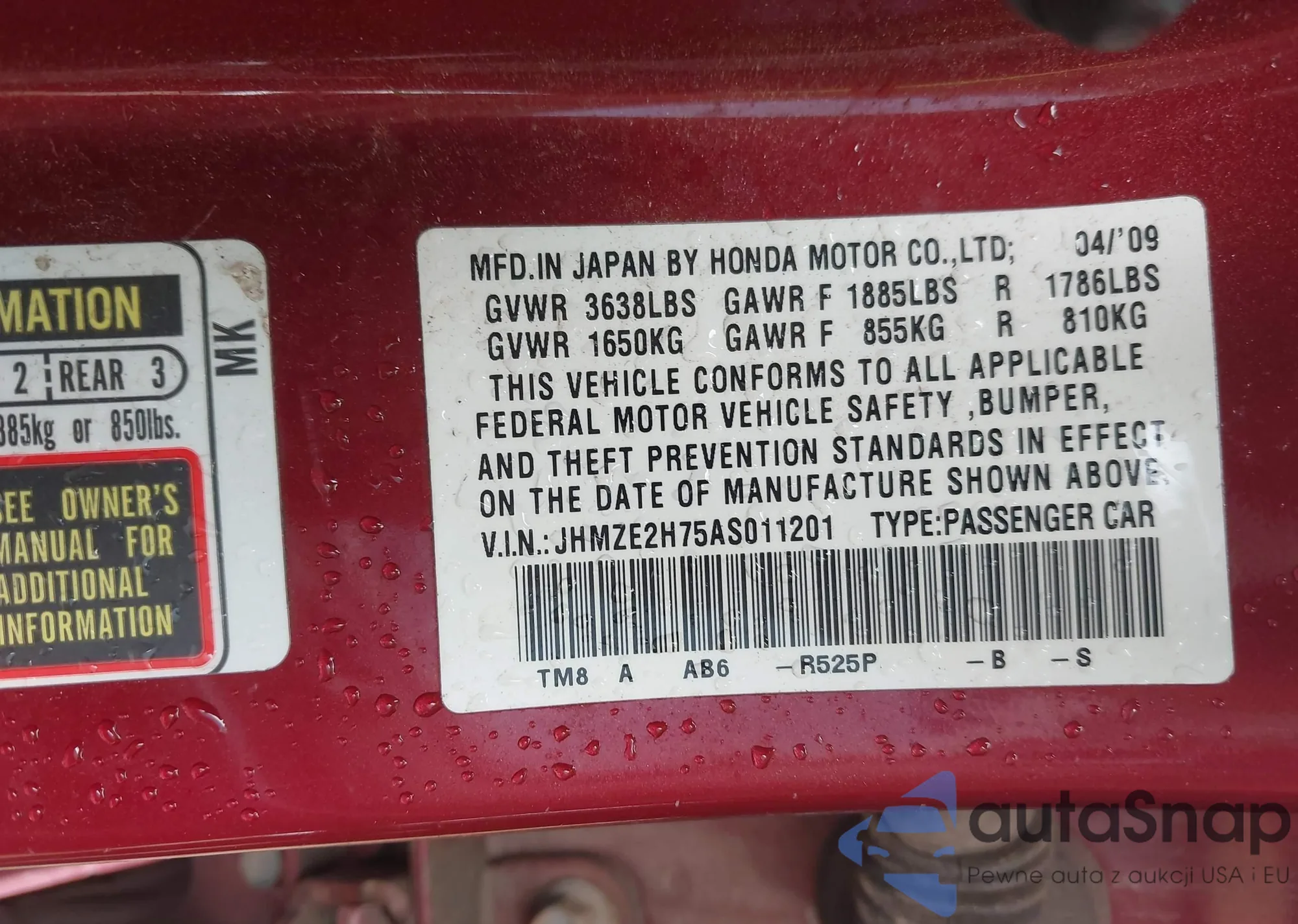 • VIN 2HKRM4H76DH614760