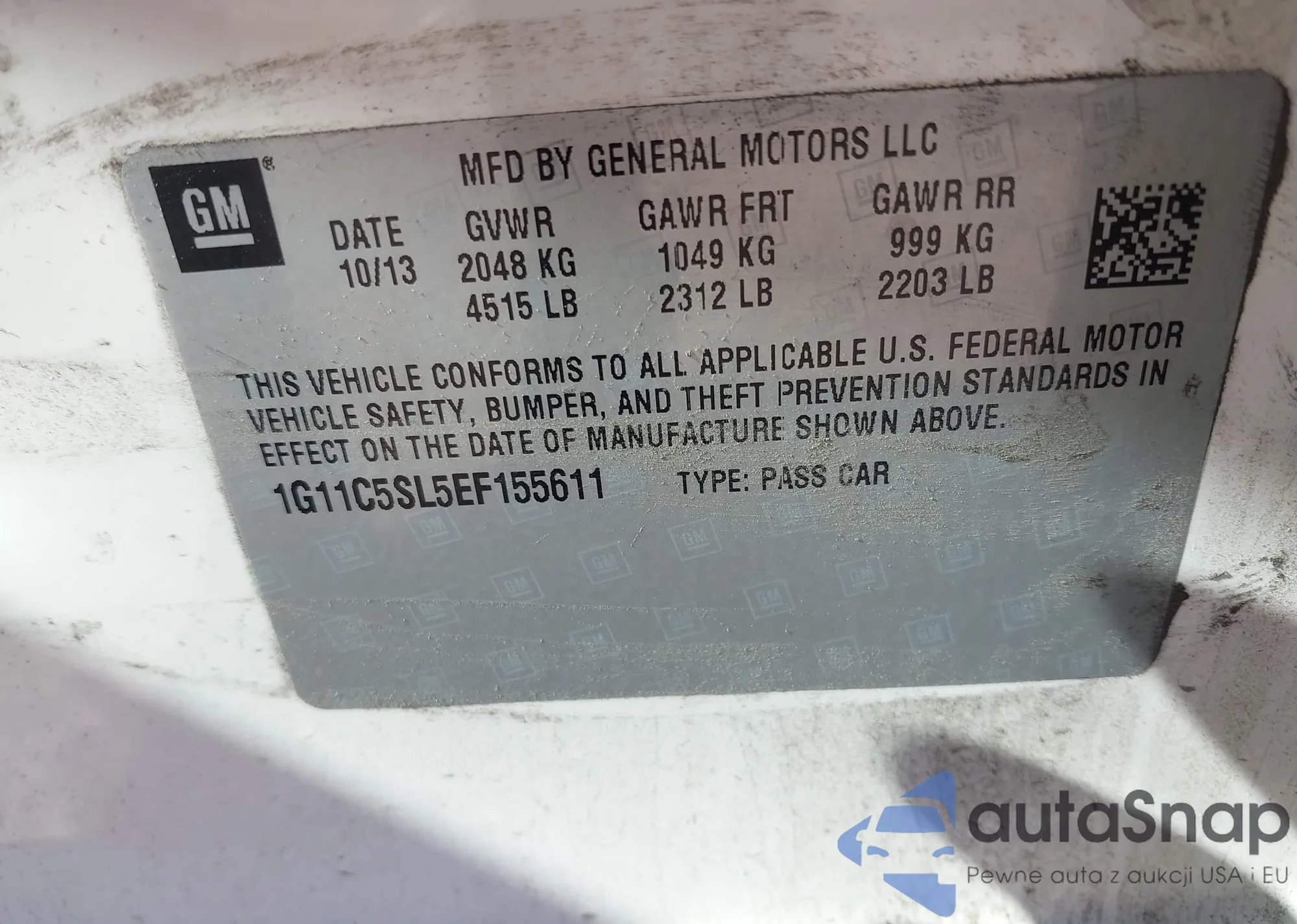 LOT: 43038360 VIN: 1G11C5SL5EF155611