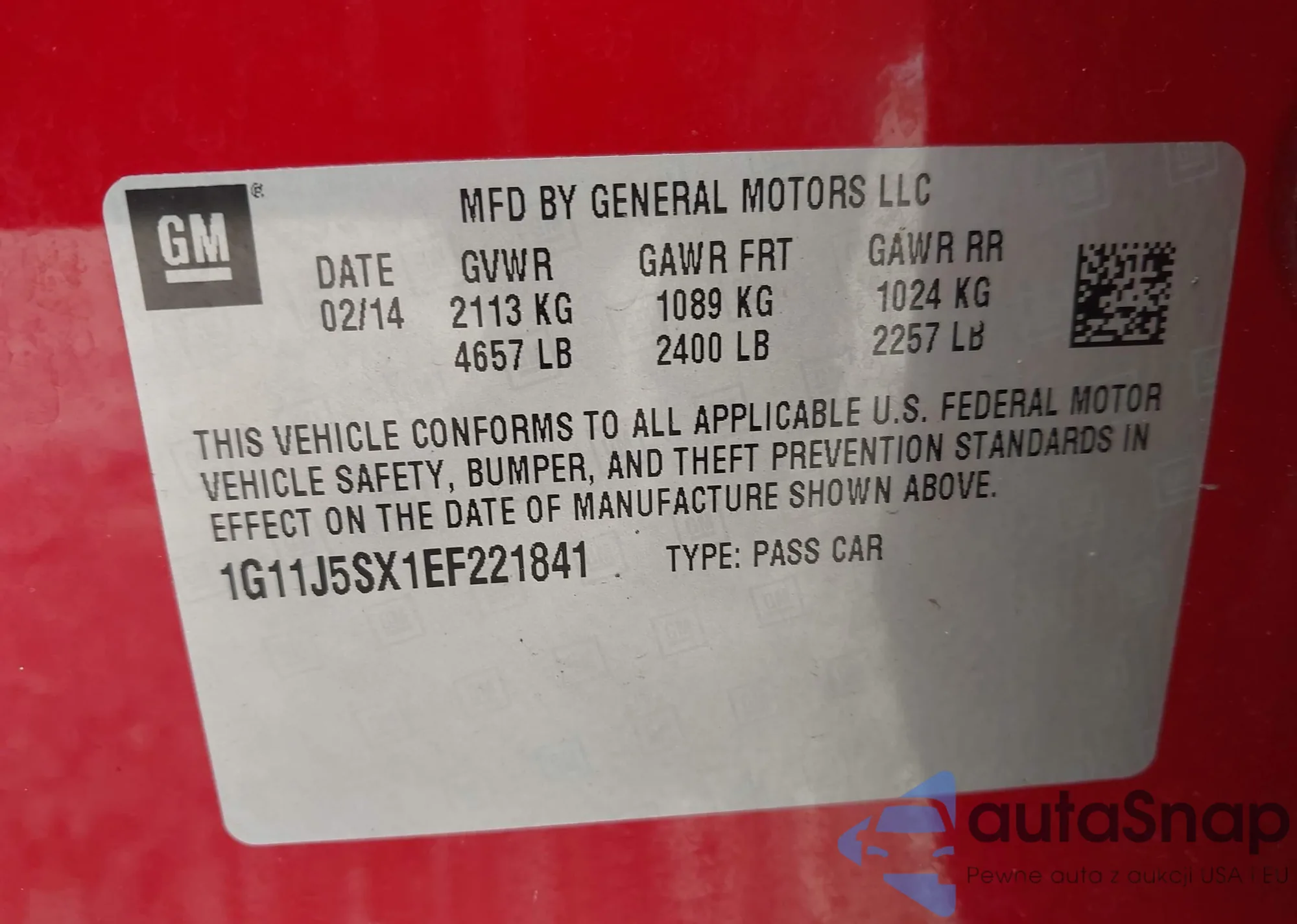 LOT: 43096012 VIN: 1G11J5SX1EF221841