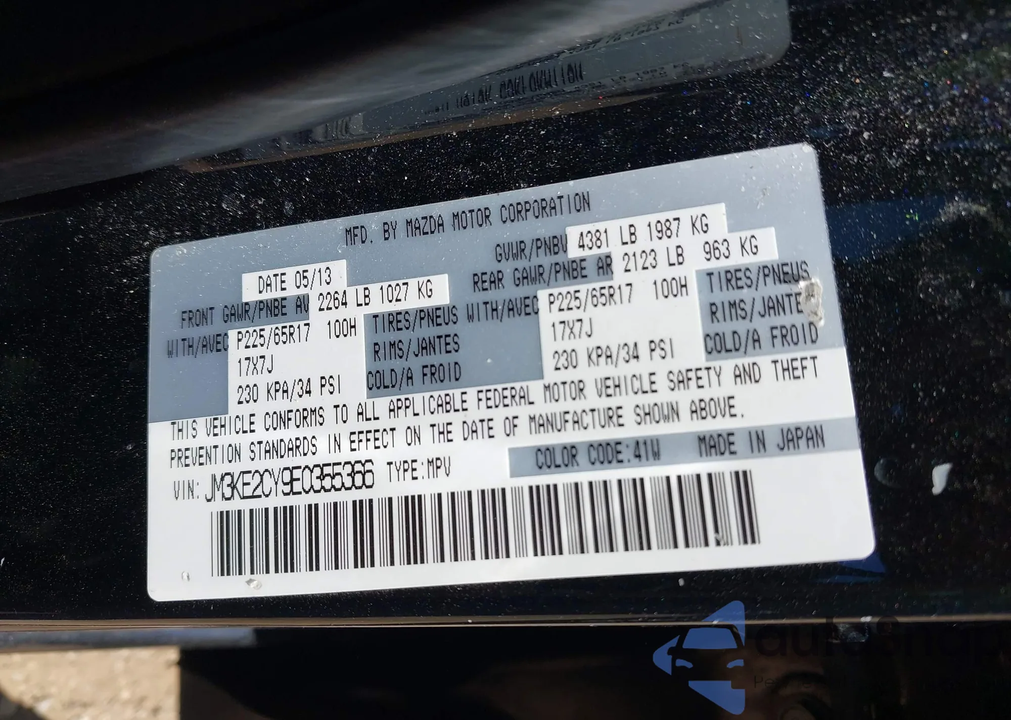LOT: 43099440 VIN: JM3KE2CY9E0355366