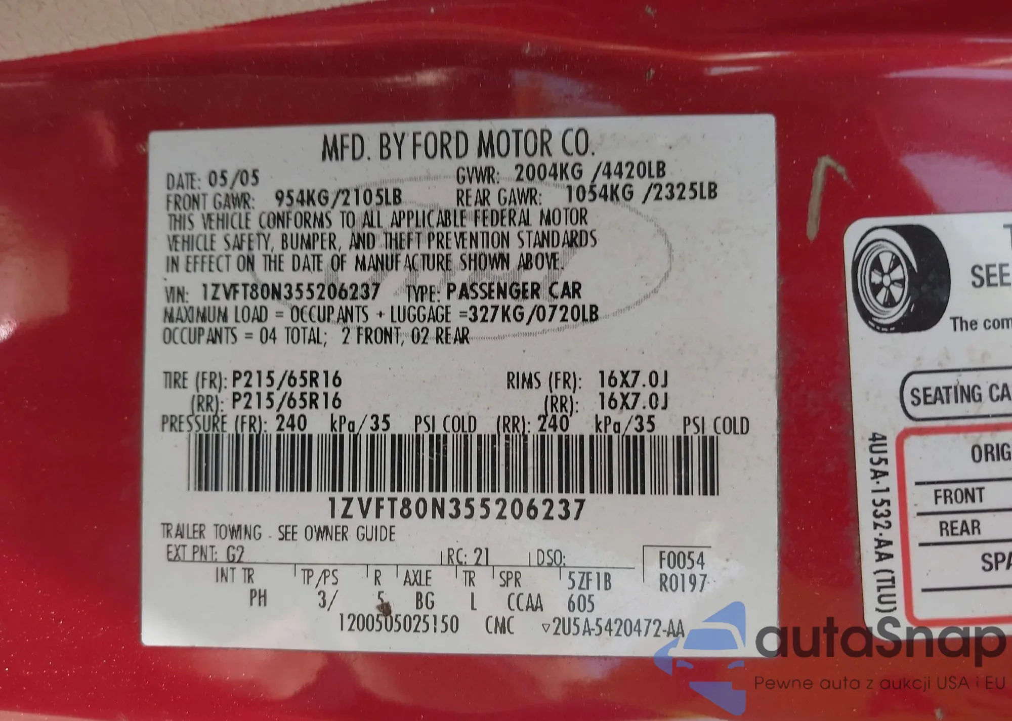 • VIN 1ZVFT80N355206237