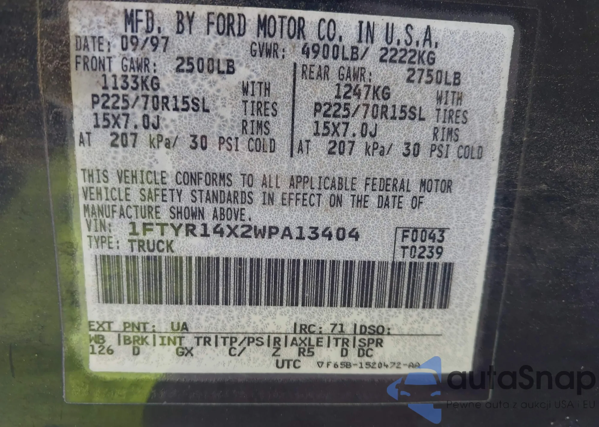 • VIN 1FTYR14X2WPA13404